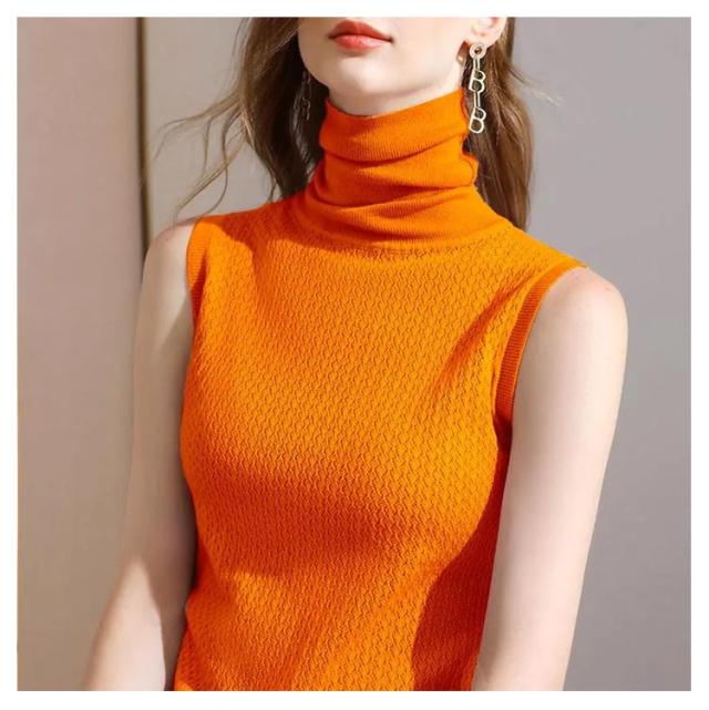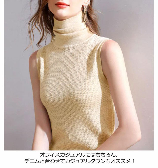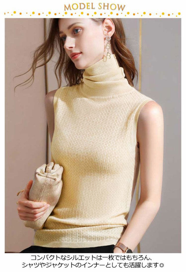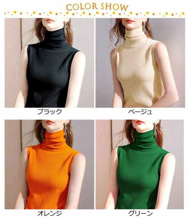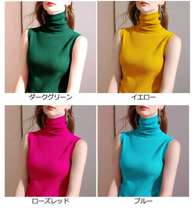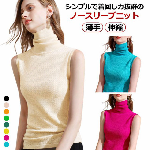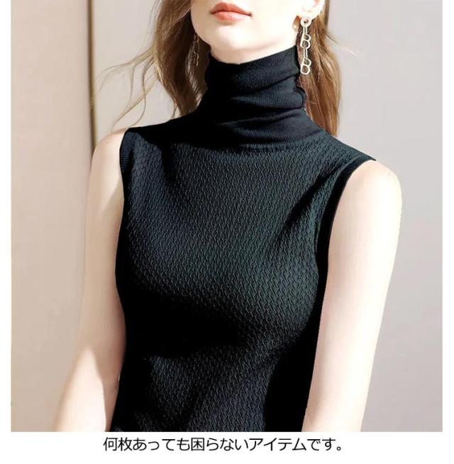 タンクトップ レディース ノースリーブ ニット カットソー 春 夏 サマーニット タートルネック ハイネック トップス キャミソール インナー 薄手 伸縮 ストレッチ 無地 オフィス カジュアル きれいめ 送料無料