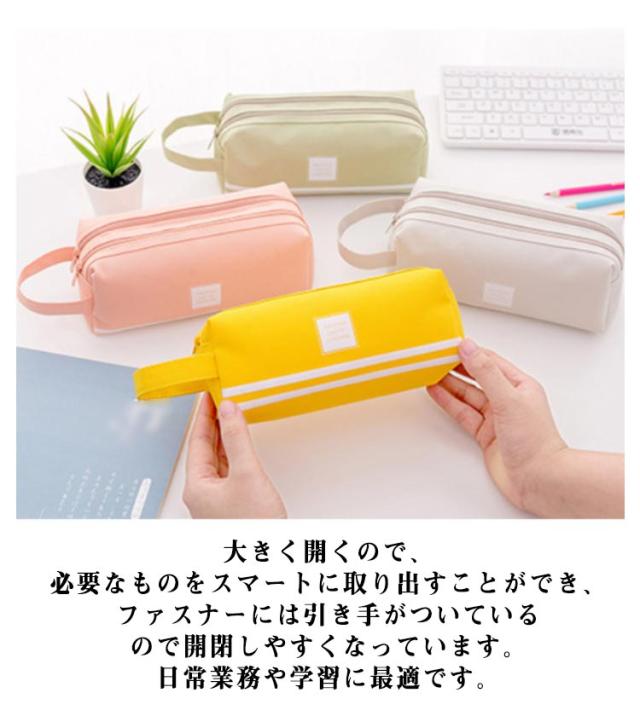 | 【筆箱】【ペン80本収納可能】【大容量】【持ち手付き】 ペン類が約80本入る大容量デザイン。消しゴム、付箋、ハサミ、定規、メジャー、修正テープなどの小物もたっぷり収容できます。 ※収容数はペンの種類によって異なります。 大きく開くので、必要なものをスマートに取り出すことができ、ファスナーには引き手がついているので開閉しやすくなっています。日常業務や学習に最適です。 筆記具などと分けて収容できるので、小物が探しやすく汚れにくいので安心です。持ち手が付いているので持ち運びにも便利で、バッグなどからの取り出しにも便利です。 文房具だけでなく、化粧品、鍵、現金、コイン、ステッカー、ヘッドホンなどの収納にも使えます。それはあなたの人生を混乱から解放するために、小さなものを集めるのに役立ちます。 シンプルでスタイリッシュな筆箱、完璧な復学、女の子、ティーンエージャー、大人、学校用品、事務用品。 | |