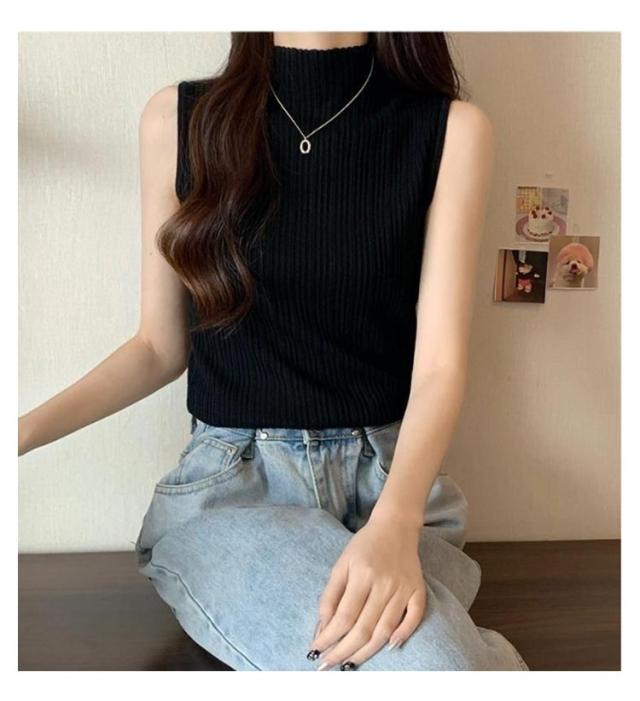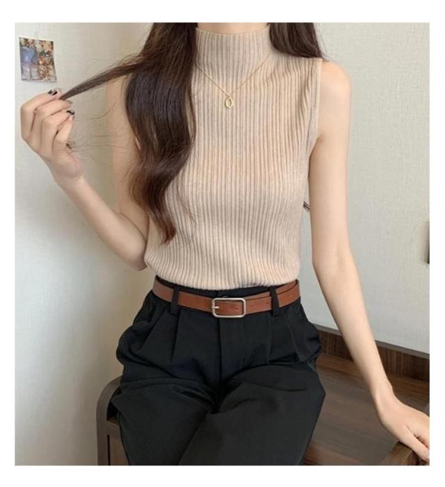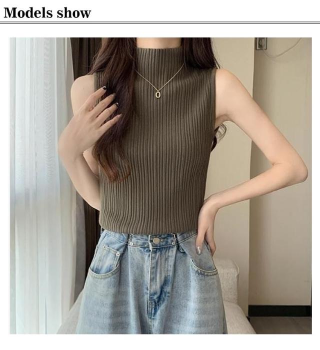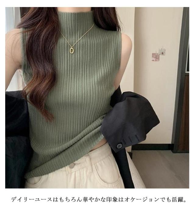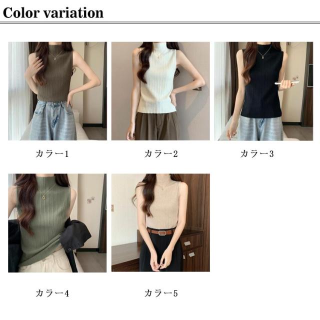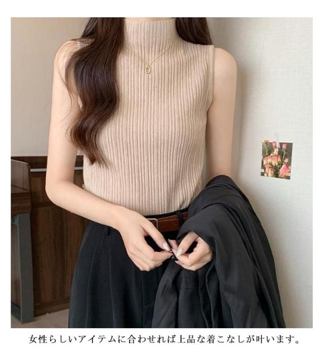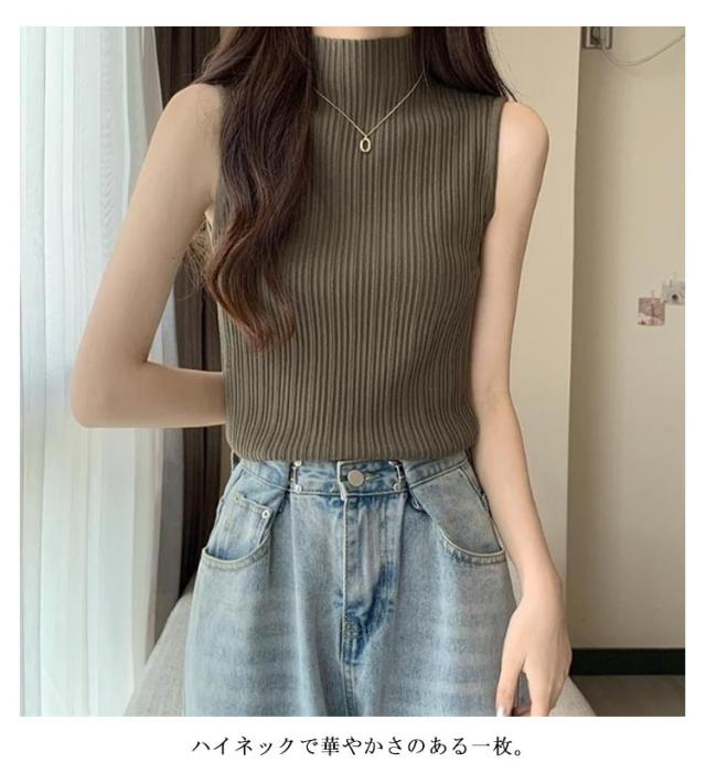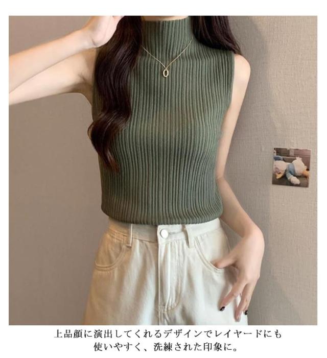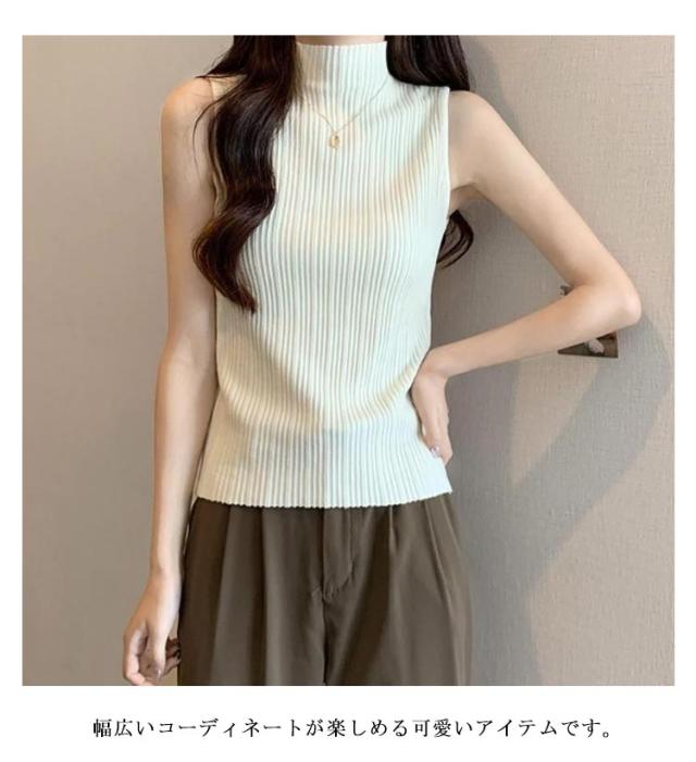 プリーツ Tシャツ ノースリーブ レディース サマーニット タンクトップ ハイネック ニットトップス 接触冷感 ストレッチ トップス 夏ニット ハイネックニット レイヤード シンプル 春 夏 S M L XL 2XL