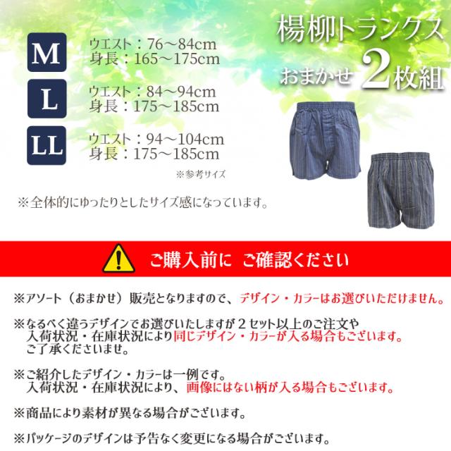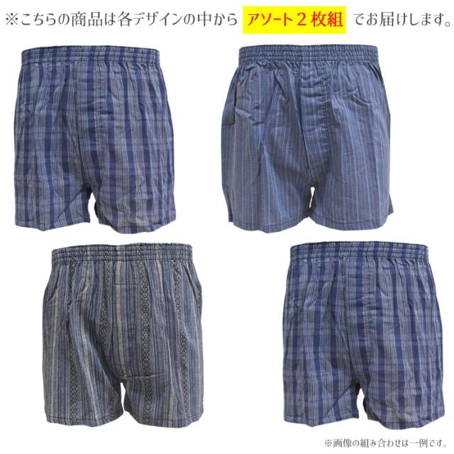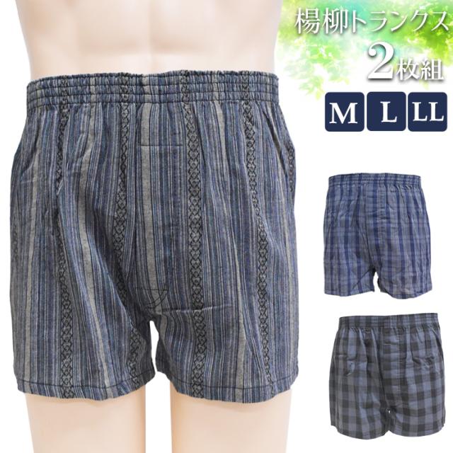 メンズ 下着 トランクス 楊柳トランクス おまかせ 2枚組 送料無料 紳士下着 ゆったり 前開き 前あき 綿 コットン 綿混 トランクス セット 男性下着 柄 パンツ アンダーウェア インナーパンツ (06248)