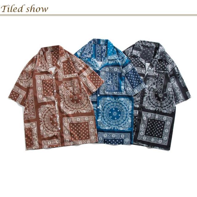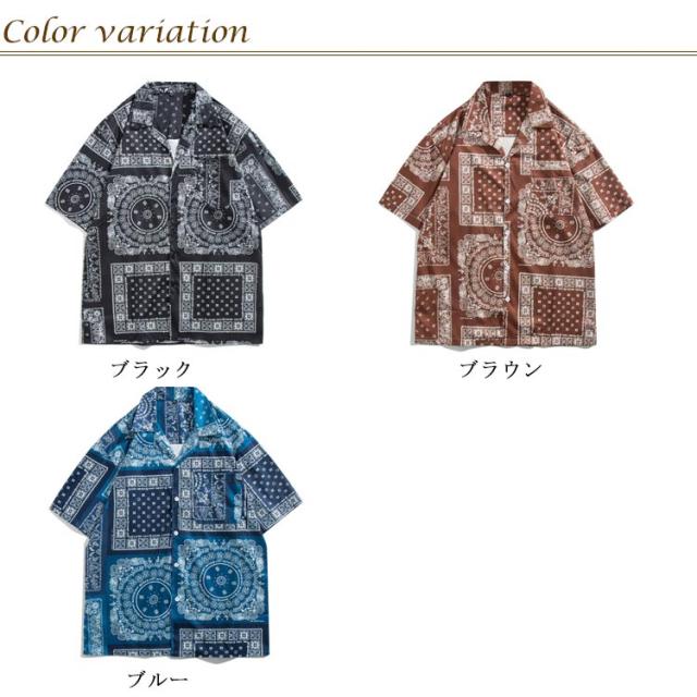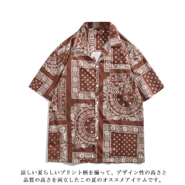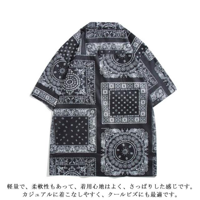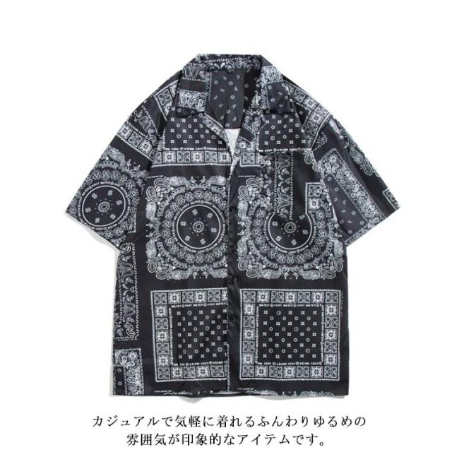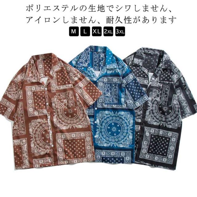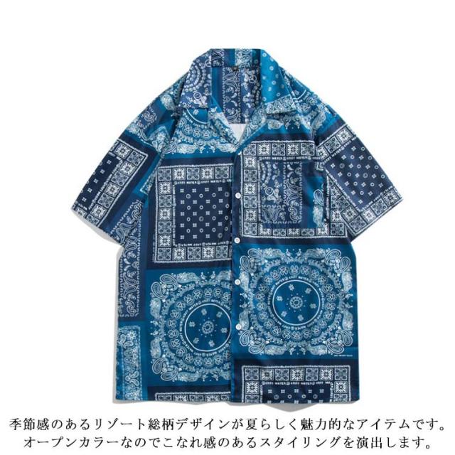 バンダナ柄 半袖シャツ 開襟シャツ ペイズリー シャツ アロハシャツ ストリート 半袖 メンズ レディース 吸汗速乾 通気性 オープンカラーシャツ 総柄 柄シャツ ミリタリーシャツ ストリート カジュアル 大きいサイズ 春 夏 送料無料