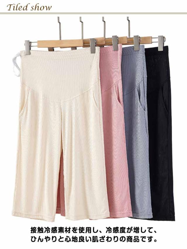 マタニティ 7分丈 ワイドパンツ ガウチョパンツ 接触冷感 クロップドパンツ プリーツ 大きいサイズ マタニティパンツ マタニティワイドパンツ レディース 妊婦 ストレッチ ガウチョ 薄手 マタニティウエア ボトムス 春夏 送料無料