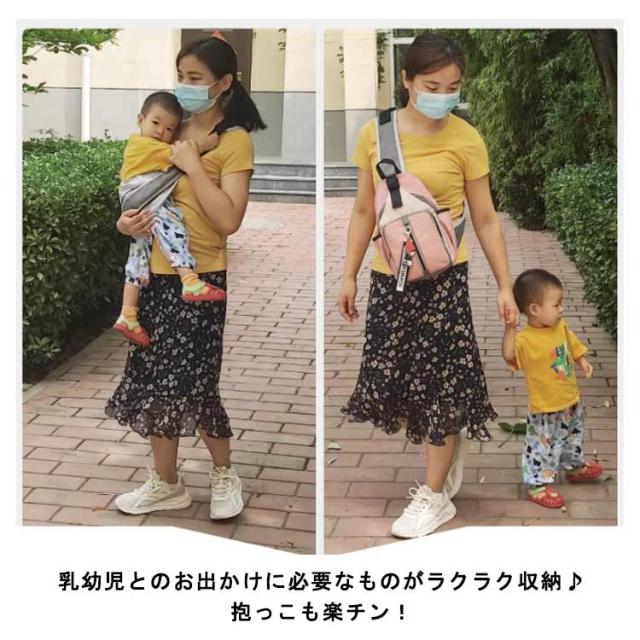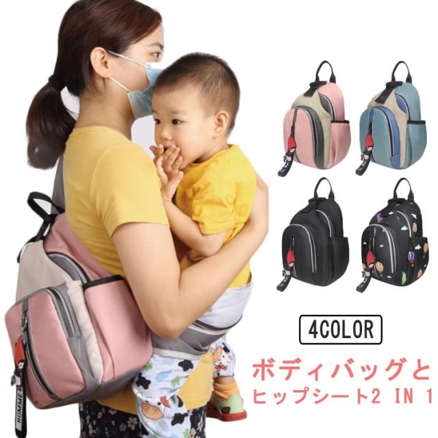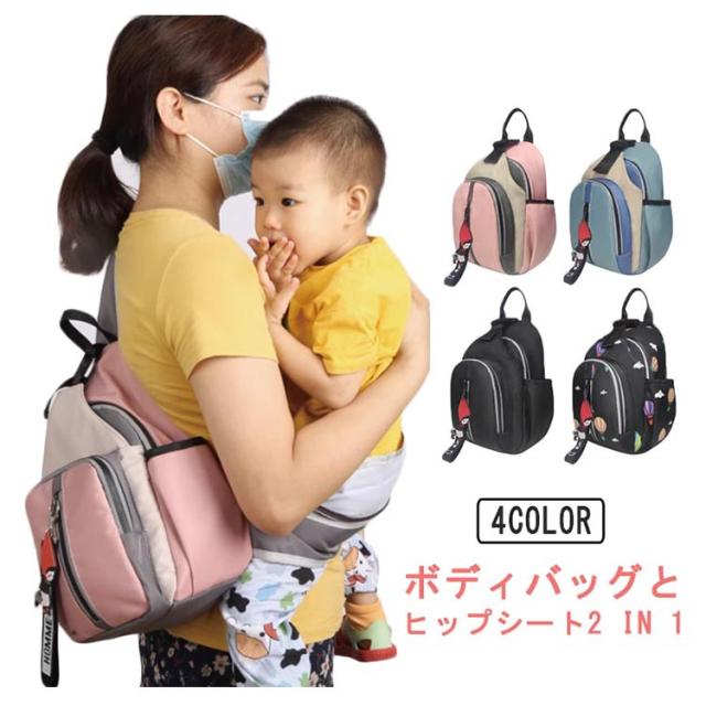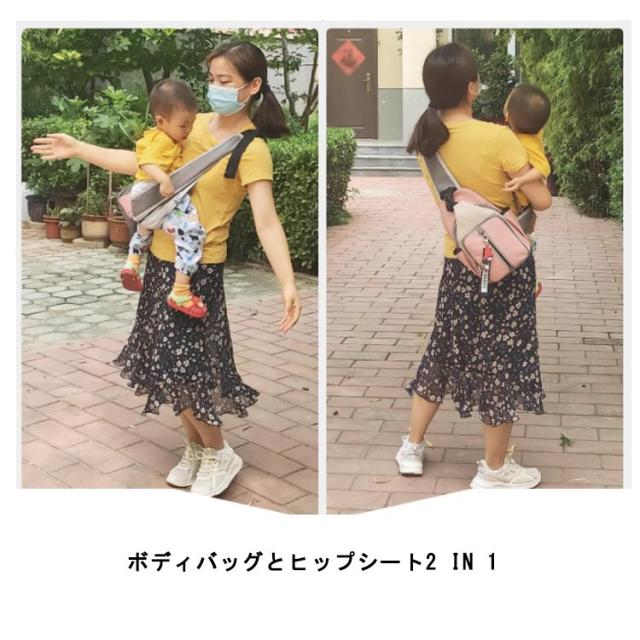 | ボディバッグとヒップシート2 in 1 乳幼児とのお出かけに必要なものがラクラク収納♪抱っこも楽チン! 哺乳瓶、水筒、おむつ、ティッシュ、折りたたみ傘、おしり拭き、スマホなど必要な物がしっかり入る。コンパクトながら充実な収納力。 保温ポケット、乾湿分離ポケットなど機能性も抜群!いつものマザーズバッグのように使い勝手抜群! 耐荷重25KG、5歳まで対応!遊び疲れて寝てしまった時やバス、電車に一緒に乗る時などとても便利。 抱っこが卒業後も普段のバッグとしても使えるからずっと使えます。 | |