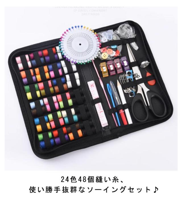 | 【裁縫セット】 【24色糸】 【ケース付き】 24色48個縫い糸、使い勝手抜群なソーイングセット♪ ワイドなうす型のケースに、裁ちはさみが入った充実のセット内容です。 専用の収納バッグで収納しやすく普段からカバンに入れても邪魔になりません。 小学校、中学校の家庭科用教材にも使える、な道具が入ったコンパクトなケースタイプです。 | |