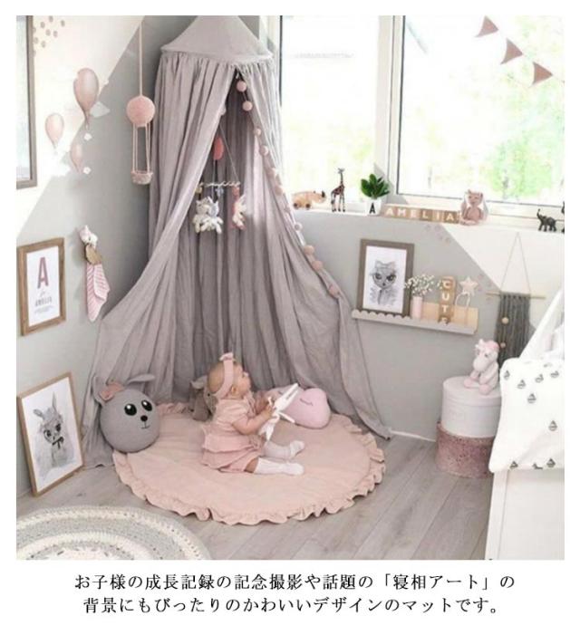 洗える サニーマット 円形 ベビー お昼寝マット 100cm 韓国 おしゃれ プレイマット コットン ベビーマット 月齢フォト 月齢 フォト マット 赤ちゃん ごろ寝アート 寝相アート よちよちマット プリーツ