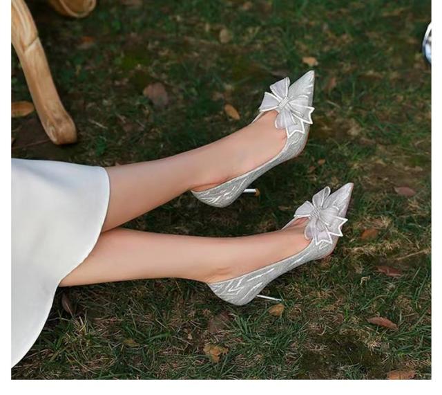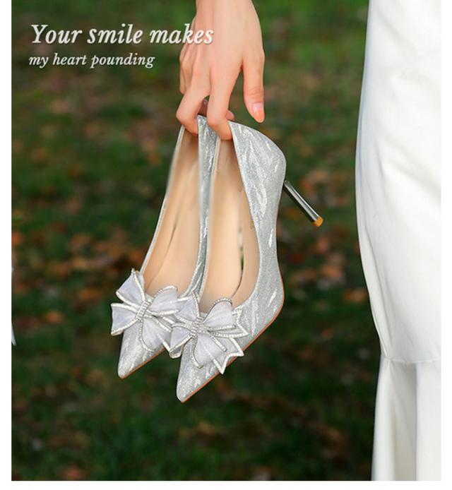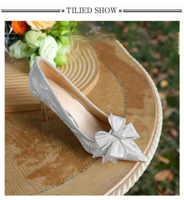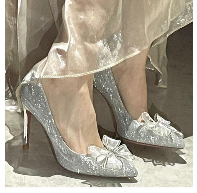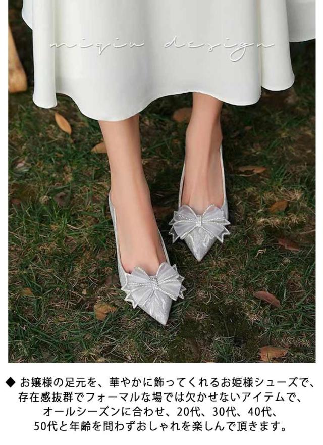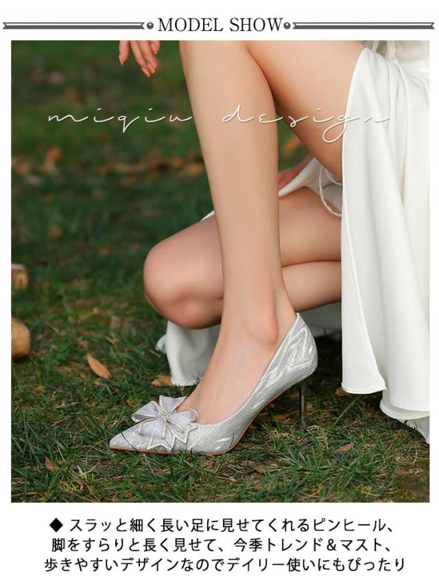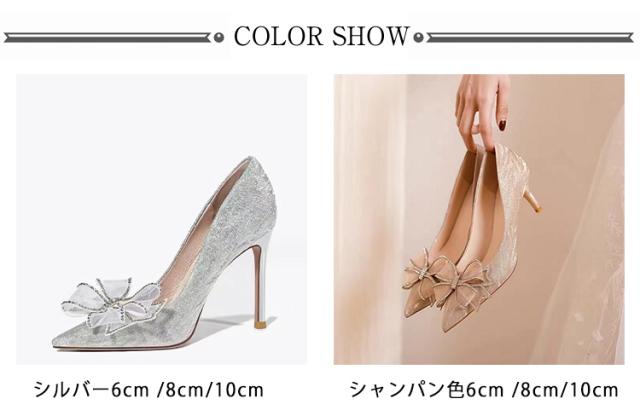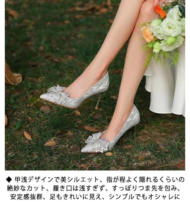 パンプス ハイヒール 甲浅 OL ピンヒール 6/8/10cmヒール ポインテッドトゥ グリッター 大人 結婚式 ウェディング キラキラ ラメ リボン オフィス レディース デイリー 履きやすい おしゃれ 大きいサイズ