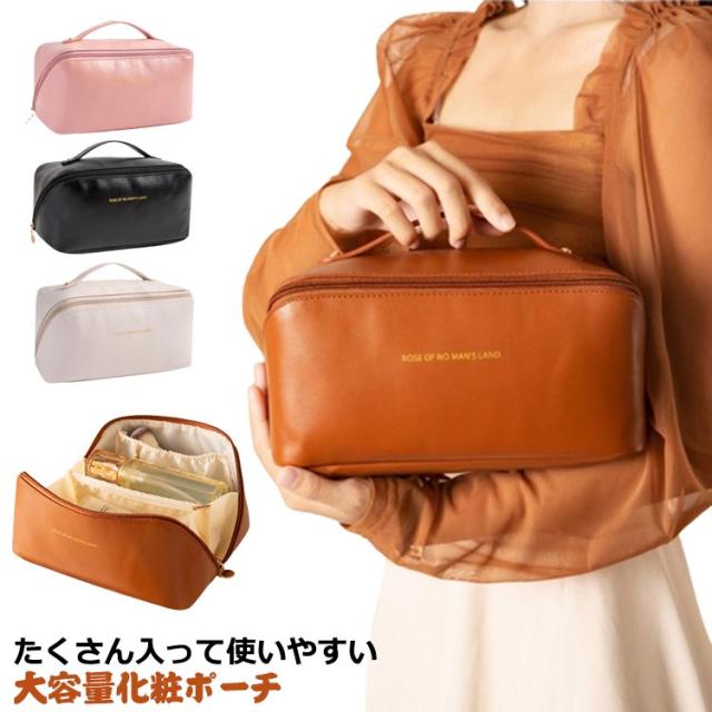 送料無料 化粧ポーチ 大容量 メイクポーチ コスメポーチ トラベル ポーチ 仕切り 小物入れ 可愛い 大きめ バニティバッグ 合皮 機能的 北欧風 化粧バッグ PUレザー おしゃれ コンパクト 整理 仕分け ポケット 収納 バッグインバッグ
