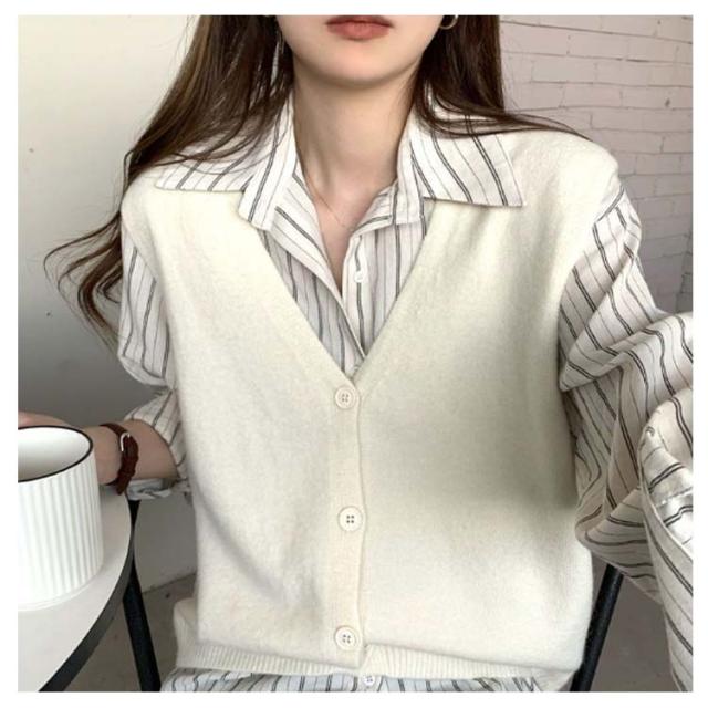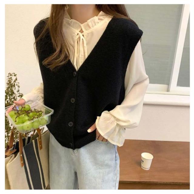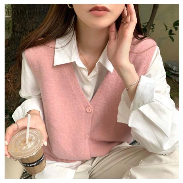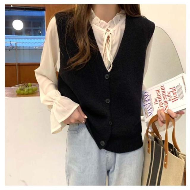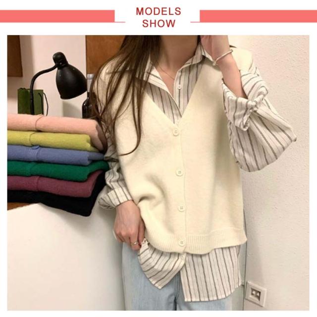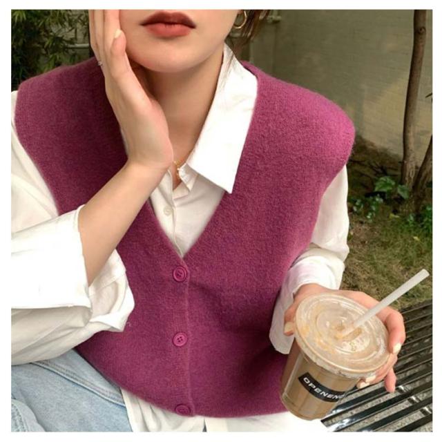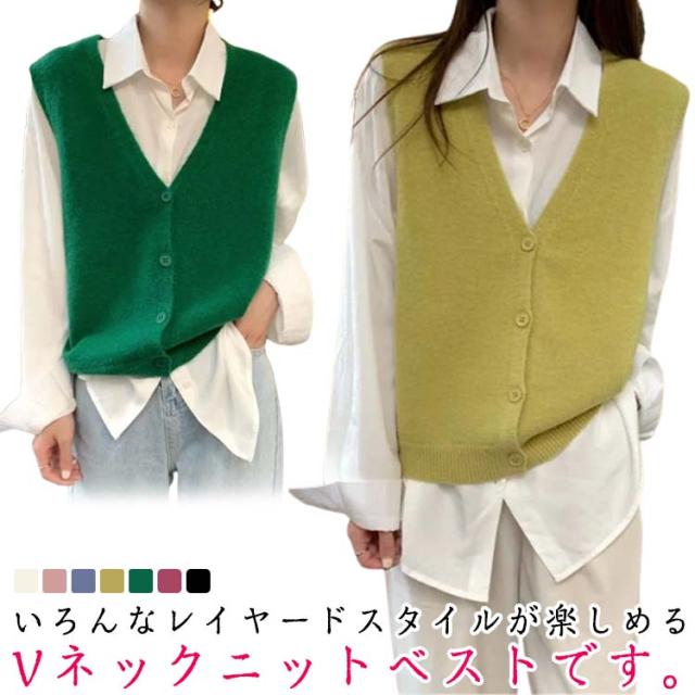 ニットベスト レディース ベスト Vネック 前開きベスト 羽織り セーター ノースリーブ サマー ベスト 柔らかい 体型カバー 7色 シンプル カジュアル 秋 冬 学生 お出かけ 普段着 無地 重ね着 レイヤード 送料無料