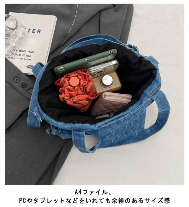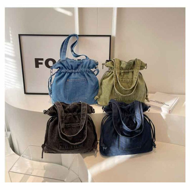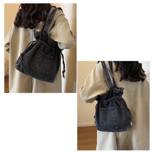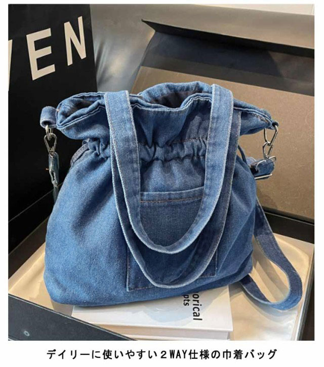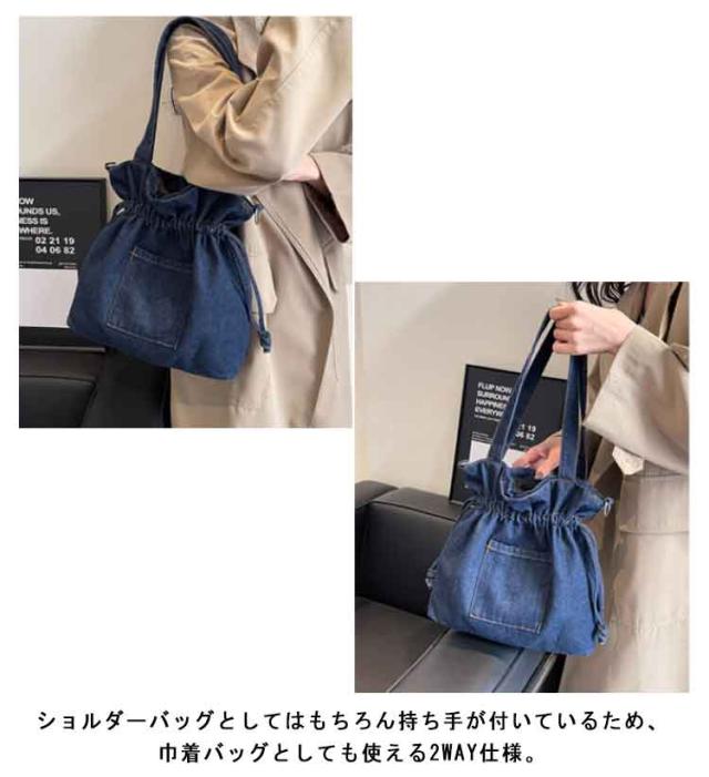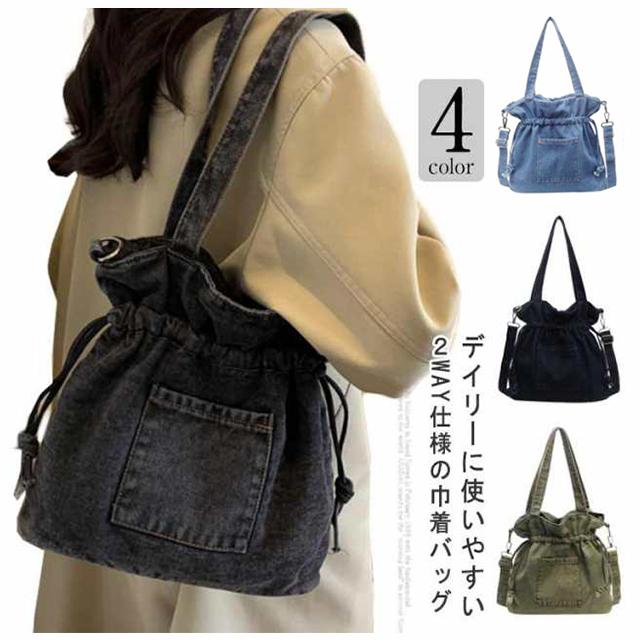 デニム 巾着バッグ ショルダー レディース 巾着 バッグ トートバッグ ショルダーバッグ キャンバス 軽量 大容量 A4 大きめ デニムバッグ 巾着バッグ トート 斜めかけ 肩掛け 鞄 カバン デニムトート 大人 カジュアル おしゃれ かわいい 【送料無料】