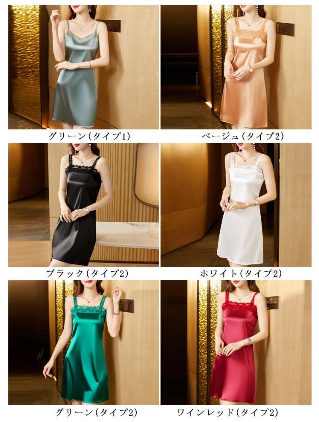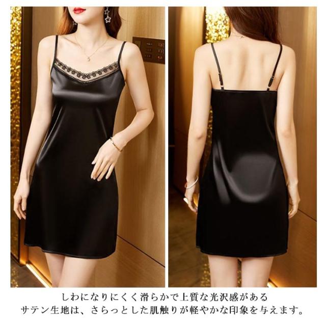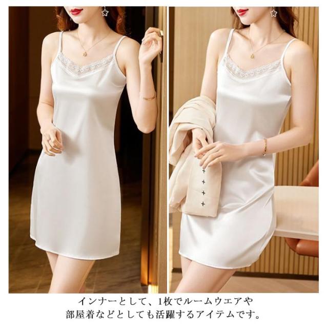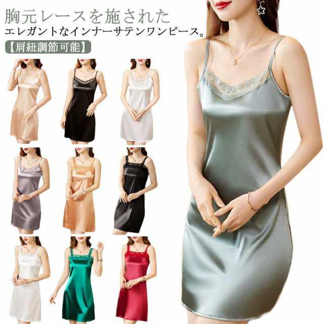 サテン キャミソール ロング ワンピース レース キャミワンピ レディース インナー ペチコート ロングキャミ 胸元レース ノースリーブ キャミワンピース 涼 サテンキャミ 肩紐調節可 ルームウェア 大人 かわいい エレガント 大きいサイズ ベージュ 【送無】