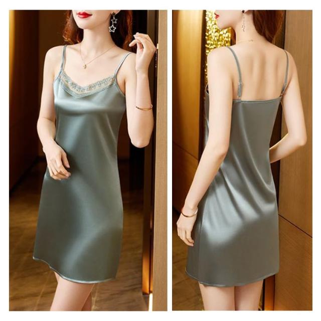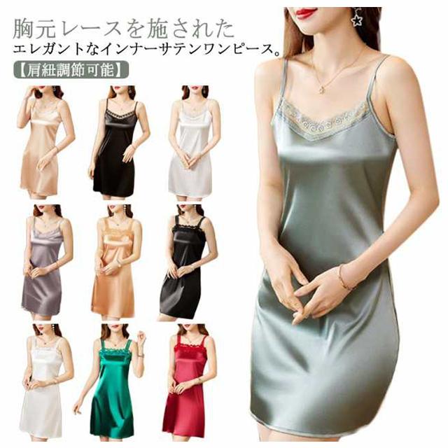 | 胸元レースを施されたエレガントなインナーサテンワンピース。【肩紐調節可能】 下着の透け防止や、ラインが響くのを防止してくれる肌着です。 しわになりにくく滑らかで上質な光沢感があるサテン生地は、さらっとした肌触りが軽やかな印象を与えます。 肩紐は調節可能なアジャスター付き。 インナーとして、1枚でルームウエアや部屋着などとしても活躍するアイテムです。 | |