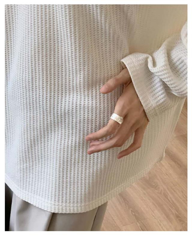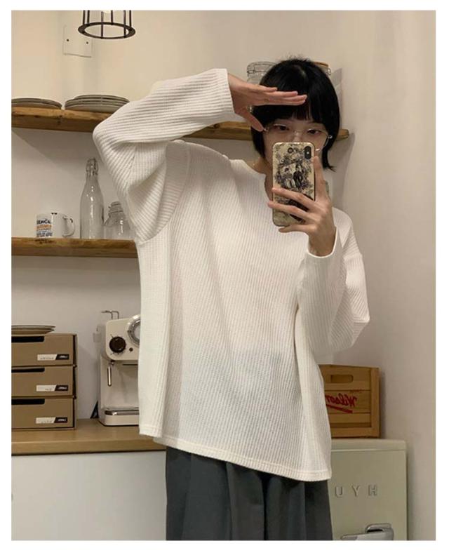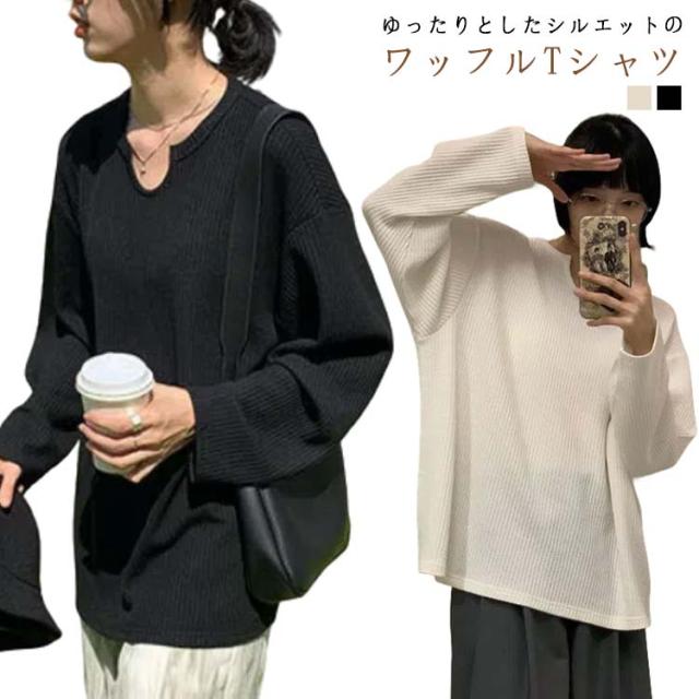 ワッフル Tシャツ 長袖 レディース 長袖tシャツ Uネック ゆったり 大きいサイズ オーバーサイズ ビッグTシャツ ロング丈 無地 白 黒 カットソー 大きめ 春夏 薄手 シンプル 重ね着 カジュアル 送料無料