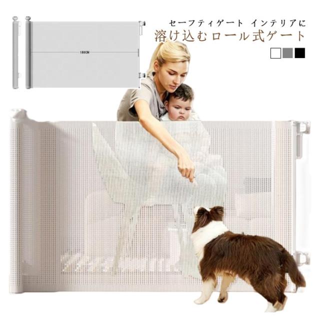 ペットゲート ベビーゲート 階段上 階段 ロール 安全ゲート ワイド 幅広 ロールタイプ セーフティゲート 伸縮 巻き取り式 脱出防止対策 140cm 180cm 段差なし ロック機能 ペットフェンス ベビーフェンス 犬 台所 廊下 玄関 キッチン メッシュ 素材 取り付け簡単