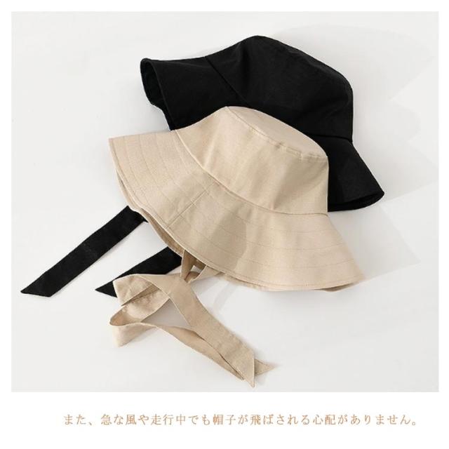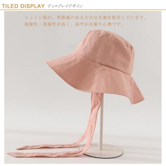 【全5色】 垂れロングリボン 帽子 レディース バケットハット つば広 ストラップ あご紐 ハット バケハ 折りたたみ サイズ調整可 リボン 可愛い 春夏 綿 おしゃれ お出かけ 通勤 UVカット 紫外線 防風 対策