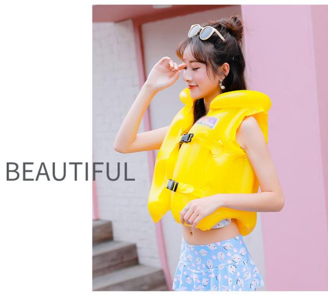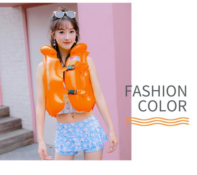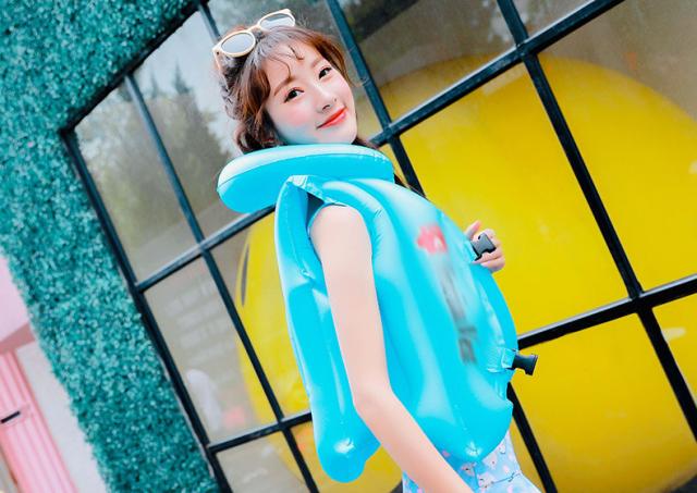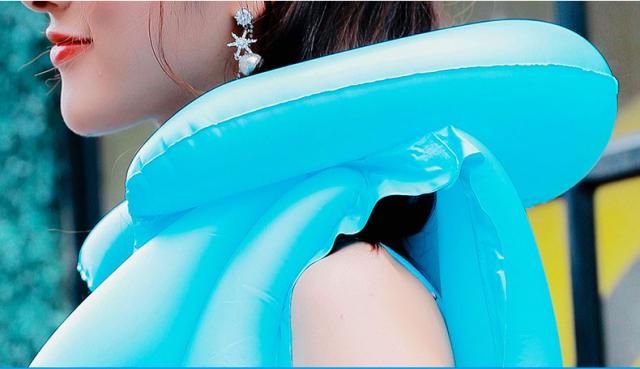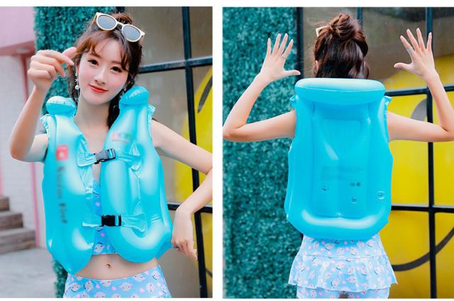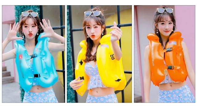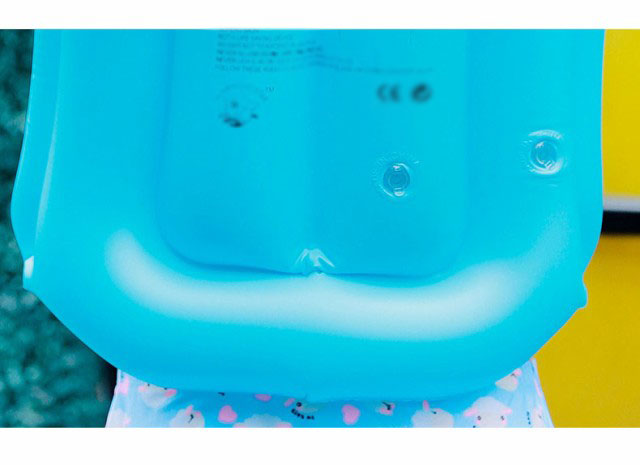 | しっかり着れるバックル付き。 三箇所に空気の入る構造で一度に空気が抜けない安全設定です。 環境に優しいPVC素材で、高品質で軽量の浮遊素材で作られています。 頭と首を保護する枕のデザインは、頭を保護しながら快適さを追加します。 お子さまを見失いにくい鮮やかなカラフルカラーもポイントです。 | |