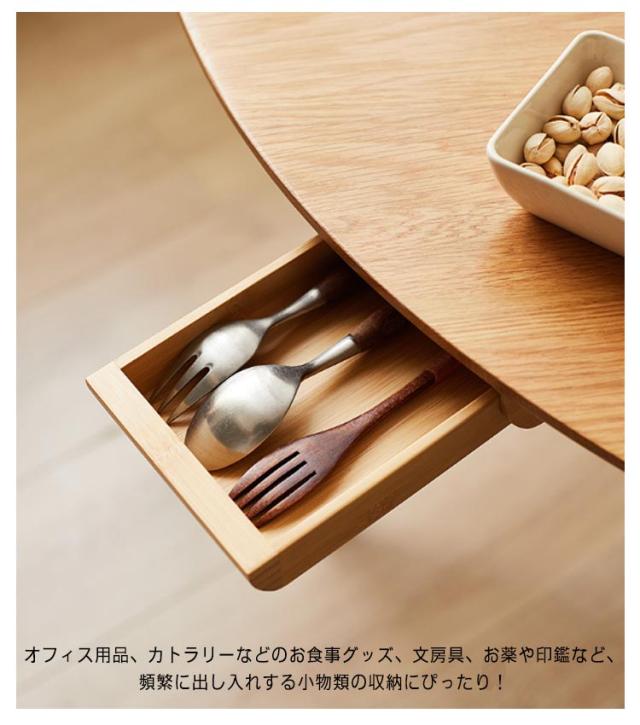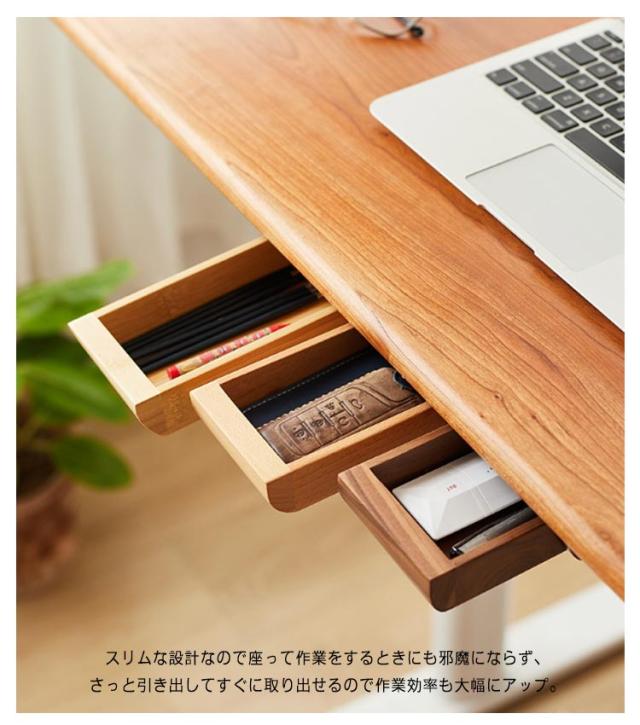 | 温かみのある天然木製の後付け引出し!テーブル下のスペースを有効活用♪ テーブルの上に散らかりがちな小物類をすっきりまとめておける、スライド収納タイプ。 粘着シールで貼るだけの簡単仕様! オフィス用品、カトラリーなどのお食事グッズ、文房具、お薬や印鑑など、頻繁に出し入れする小物類の収納にぴったり! デスクはもちろんダイニングテーブルやキッチン、クローゼットなどのスキマを活かして収納スペースが拡張できます。 スリムな設計なので座って作業をするときにも邪魔にならず、さっと引き出してすぐに取り出せるので作業効率も大幅にアップ。 天然木のナチュラルな風合いが、どんなお部屋にも馴染みます。 | |