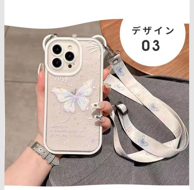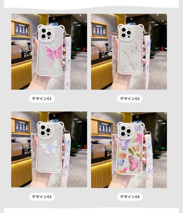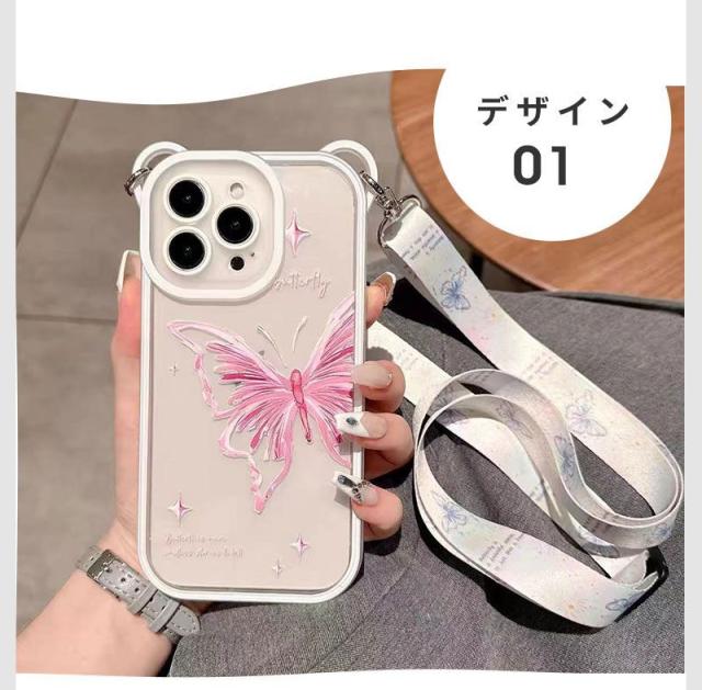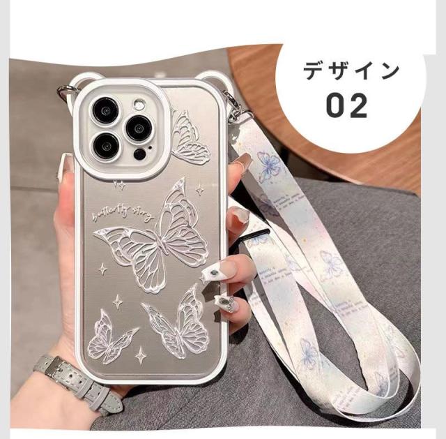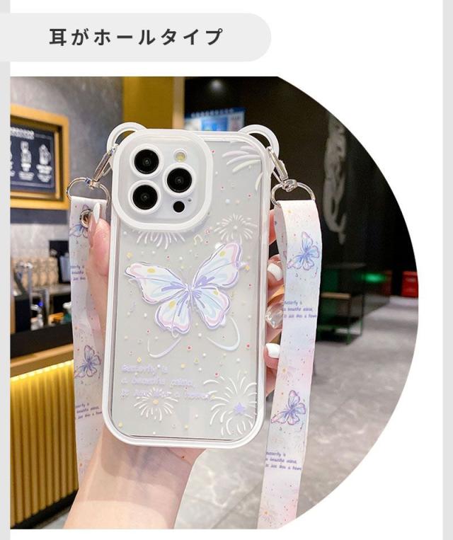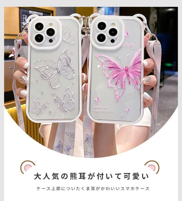 スマホショルダー iphone 14proケース かわいい 蝶柄 熊耳 iphone12 ケース 耐衝撃 iphone13 ケース iphone 14promax ケース スマホケース iphone 14 iphone 14プロケース クリアケース 熊耳ホールタイプ メッキフレーム 背面透明