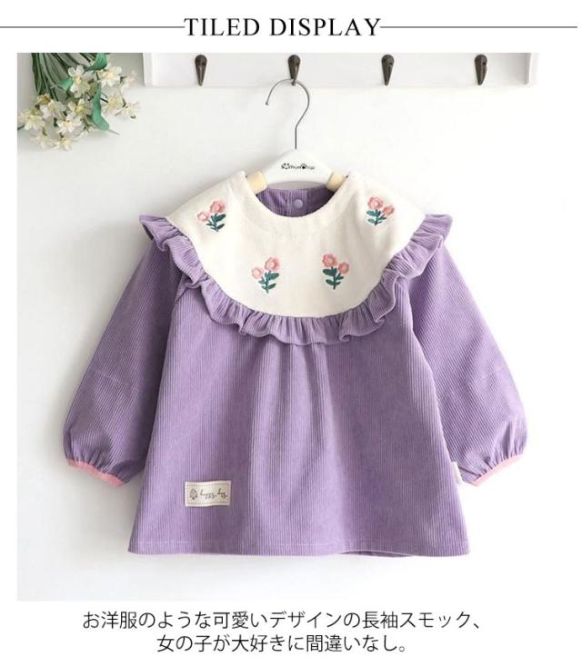 スモック 子供 女の子 ブラウス 長袖スモック 刺繍 お砂場着 砂遊び ベビースモック 可愛い フリル 汚れ防止 お食事 エプロン 汚れ防止 絵画 外遊び 外遊び お食事 エプロン 保育園 幼稚園 赤ちゃん 幼児 防水エプロン 子供服 春 秋冬 ギフト 送料無料