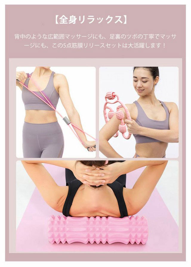 5点セット フォームローラー ヨガポール 筋膜リリース ストレッチ マッサージローラー スティック 筋膜ローラー トレーニング器具 フィットネス ストレス解消 筋肉痛改善 ヨガ用品 スポーツ器具 送料無料
