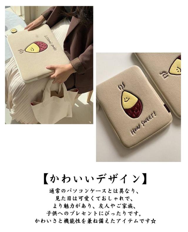 | 内側の素材は触り心地の良いふわふわで柔らかい起毛素材のためパソコンに傷を付けません。 【かわいいデザイン】通常のパソコンケースとは異なり、見た目は可愛くておしゃれで、より魅力があり、友人やご家族、子供へのプレセントにぴったりです。かわいさと機能性を兼ね備えたアイテムです☆ | |