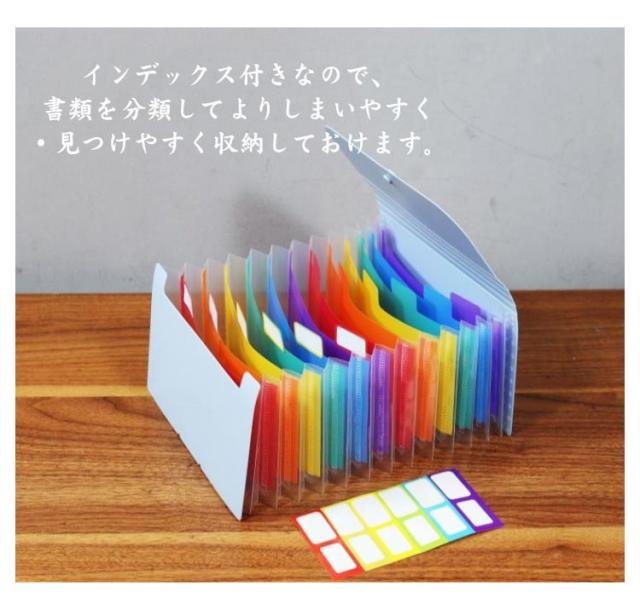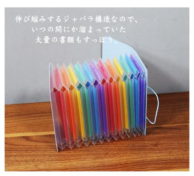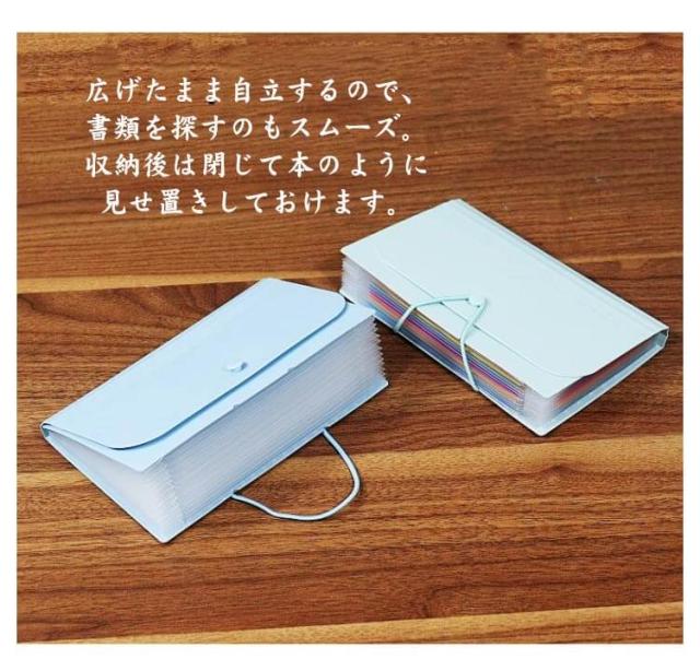 | や明細、手紙類などが入る便利なジャバラ式ファイル。 たっぷり大容量な8ポケット/12ポケットで家族別の整理にもおすすめ。 伸び縮みするジャバラ構造なので、いつの間にか溜まっていた大量の書類もすっぽり。 インデックス付きなので、書類を分類してよりしまいやすく・見つけやすく収納しておけます。 広げたまま自立するので、書類を探すのもスムーズ。収納後は閉じて本のように見せ置きしておけます。 プリントや、手紙等、紙類の分類に。色々な場面で便利にお使いいただけます。 | |