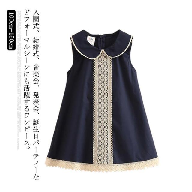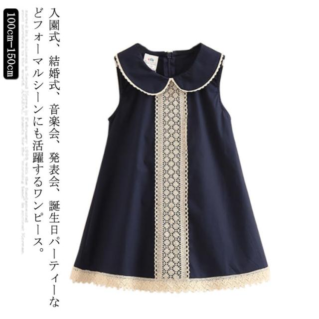 フォーマル ワンピース 入学式 子供 送料無料 ノースリーブ 丸襟 ワンピース レース Aライン キッズ 100 110 120 130 140 150 春夏 結婚式 パーティー