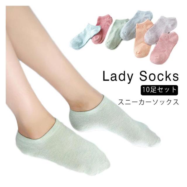 送料無料 10足セット ソックス 脱げにくい レディース スニーカーソックス ショートソックス くるぶし靴下 くるぶしソックス ショート 靴下 ソックス アンクルソックス 吸水速乾 防臭 コットン 薄手 無地