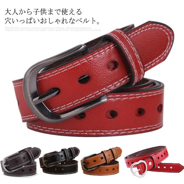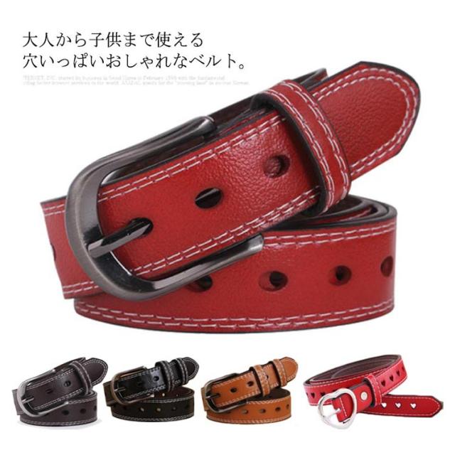 | 大人から子供まで使える穴いっぱい おしゃれなベルト。 穴がいっぱいあって、自分のサイズに合わせてぴったりフィット! 遊び心を込めたハート型バックルと穴デザインもあり、ビジネスやカジュアルシーンも使えるおしゃれなデザインの2タイプを揃えています。 優しい女性の印象を与えてくれるおしゃれなベルト。 ブラック、レッド、ブラウン、ダークブラウンの4色展開から選べるのも嬉しいポイント。 | |