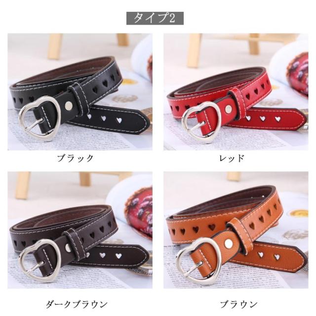 全2タイプ×4色 ベルト レザーベルト レディース PUレザー ピン式 おしゃれ ハート形 細ベルト 穴 いっぱい アクセサリー フェイクレザー 女性用 子供 韓国ファッション おしゃれ カジュアル