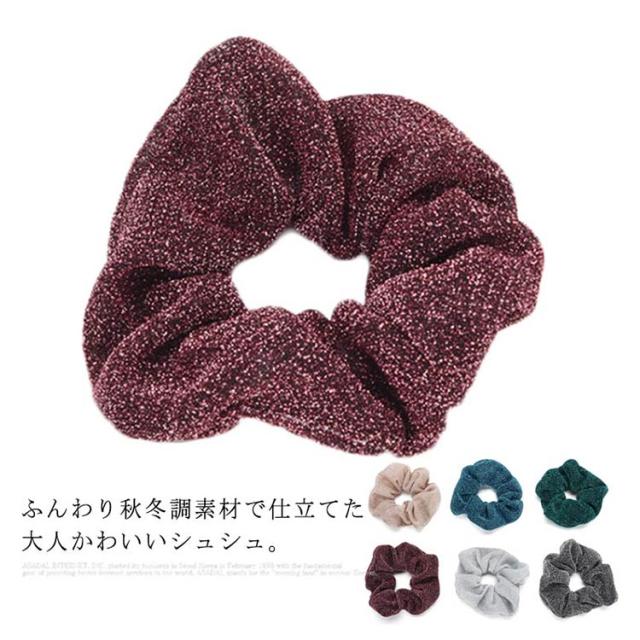 | ふんわり秋冬調素材で仕立てた大人かわいいシュシュ。 これ一つで簡単かわいいヘアアレンジお役立ちアイテム。 きらきらとしたラメ入りでシンプルなのにおしゃれ。 寝坊した朝もさっと結ぶだけでお手軽ヘアアレンジのお役立ちアイテムです。 髪を結ぶだけでなく、腕に付けかわいいバングルとしてもお使いいただけます。 | |