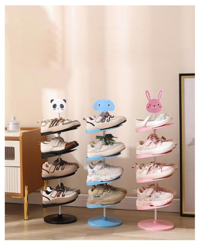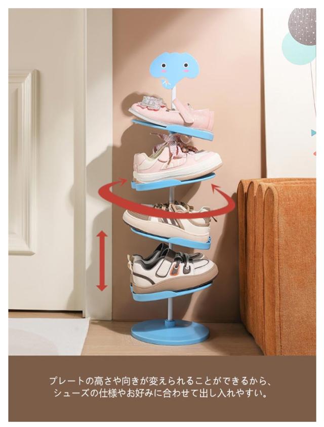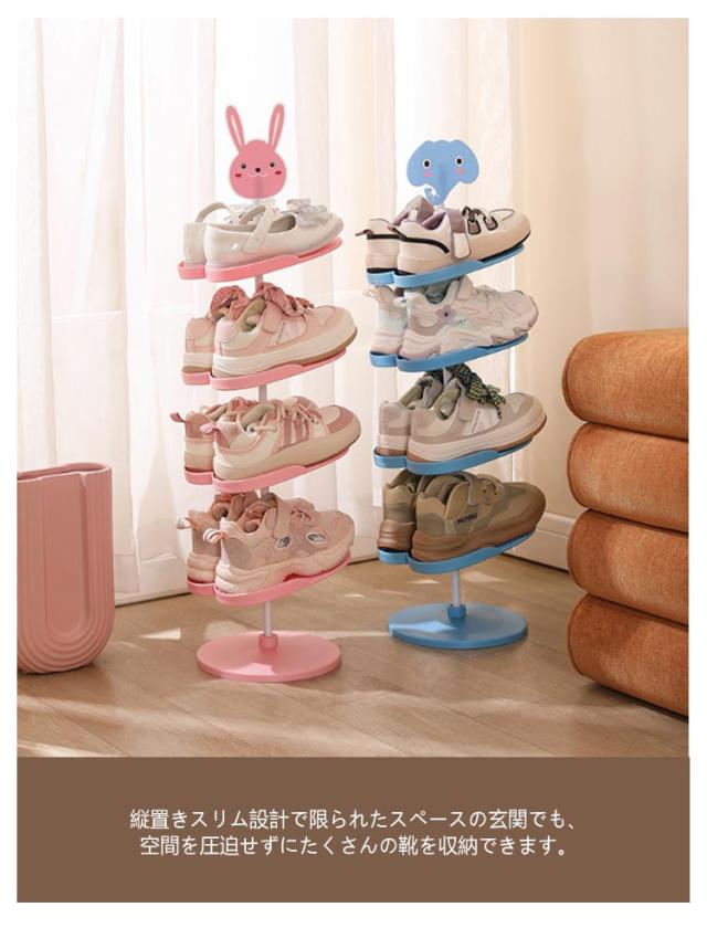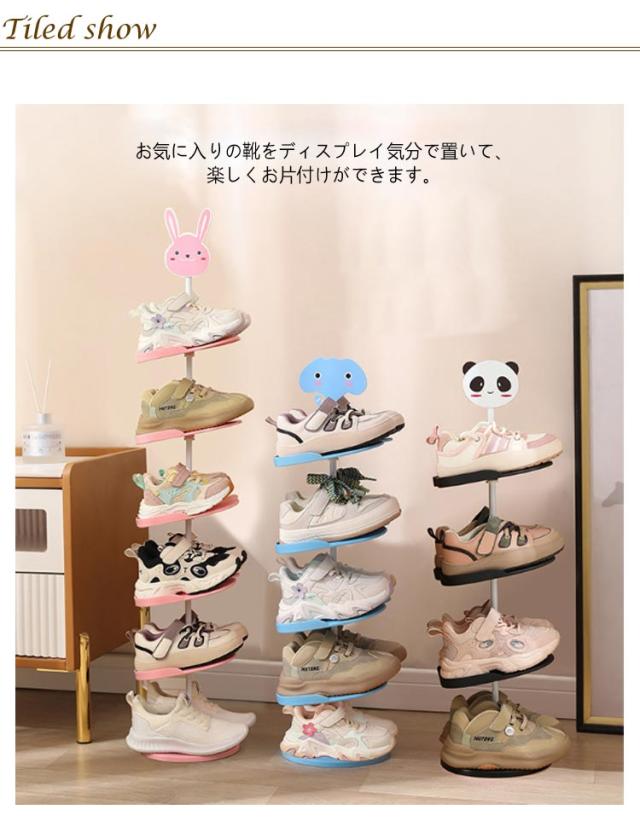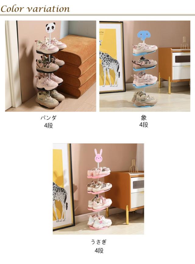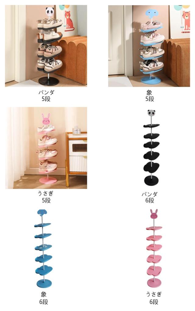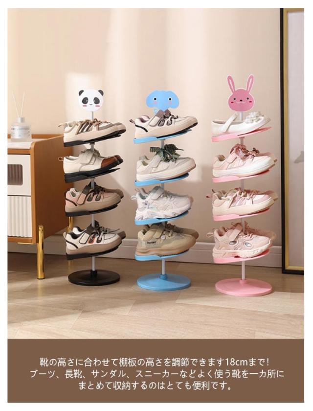 シューズラック 靴箱 靴入れ キッズシューズラック 4段 5段 6段 子ども用 下駄箱 玄関収納 収納ラック 子供用 シューズ収納 靴 子供靴 キッズ用 省スペース スリム アニマル 動物 パンダ ウサギ 象 シューズボックス おしゃれ かわいい 360℃回転 高さ調節