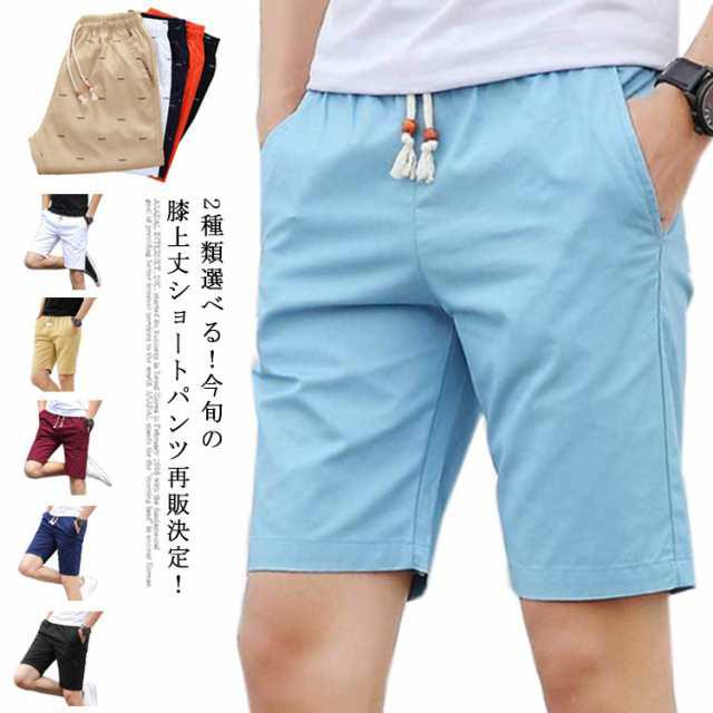 2種類選べる!ショートパンツ メンズ ハーフパンツ 5分丈パンツ 膝丈パンツ 水陸両用 短パン 5分丈 カジュアルパンツ ビーチウエア 無地 プリント ウエストゴム 大きサイズ 夏服 夏物 送料無料