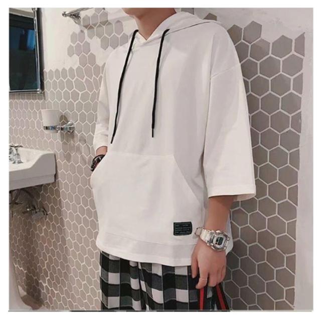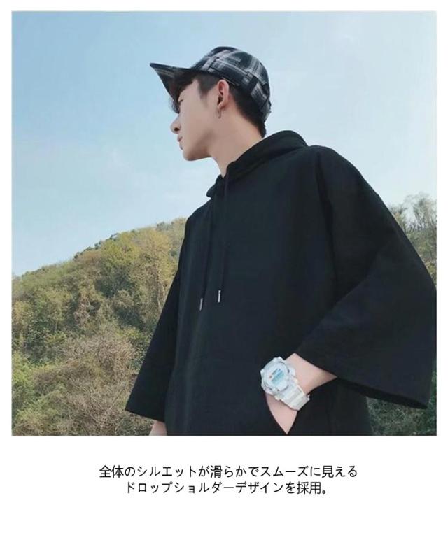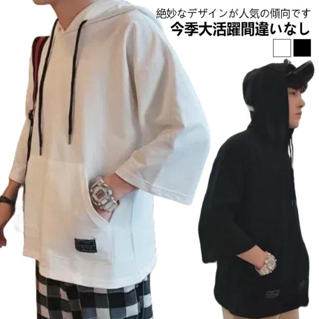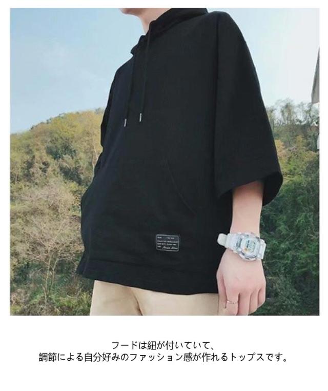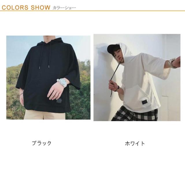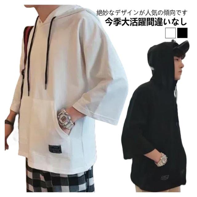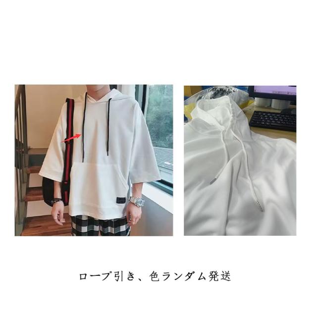 半袖パーカー パーカー メンズ 半袖 薄手パーカー フード付きtシャツ プルオーバーパーカー 薄手 春服 夏服 冷感 トップス 無地 シンプル 夏 韓国 白 黒 ホワイト ブラック 大きいサイズ 送料無料