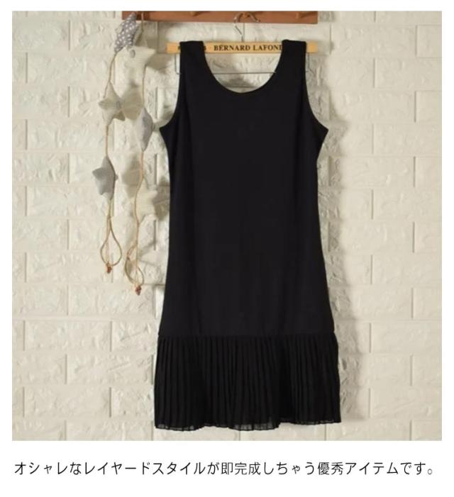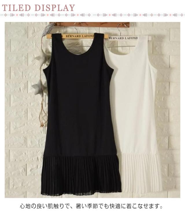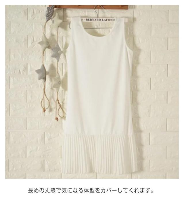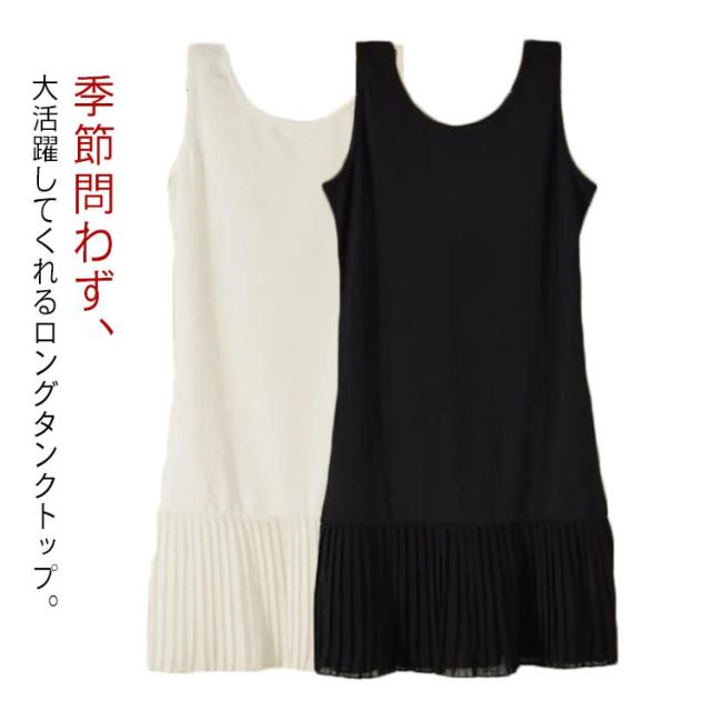 タンクトップ レイヤード プリーツ レイヤード キャミソール ノースリーブ トップス 体型カバー お尻が隠れる 大きいサイズ キャミ 無地 インナー 付け裾 ブラック ホワイト 春夏 送料無料