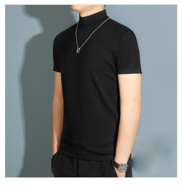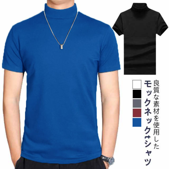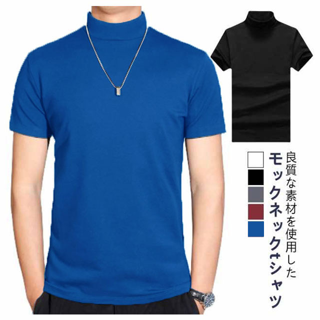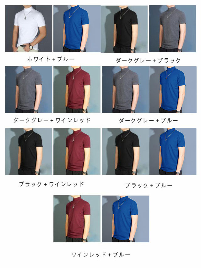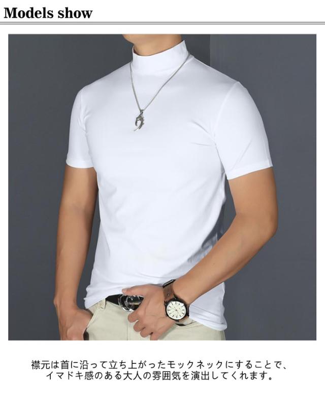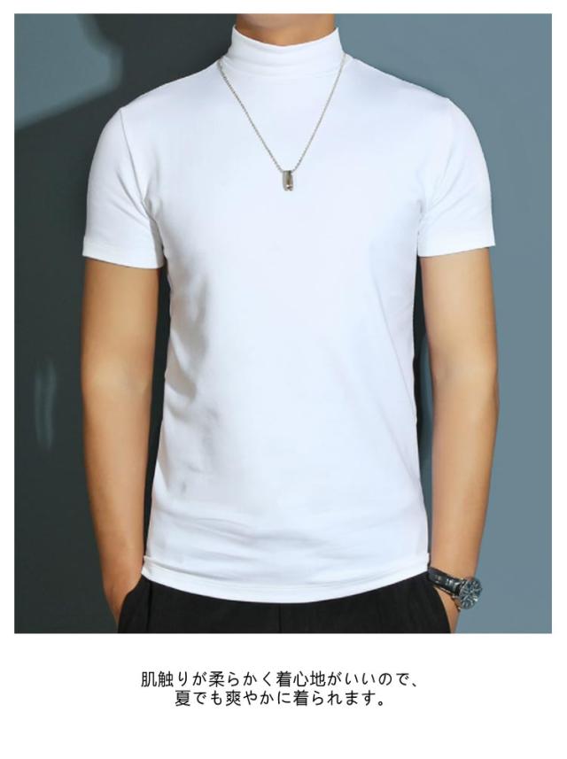 ハイネック 半袖 カットソー メンズ tシャツ 半袖Tシャツ スリム 無地tシャツ 2枚セット 襟高さ4-5cm ハイネックtシャツ 夏 紳士服 無地 シンプル 着?せ 重ね着 ティーシャツ トップス 春秋 ゴルフウェア カジュアル 大きいサイズ シンプル 紫外線カット 送料無料