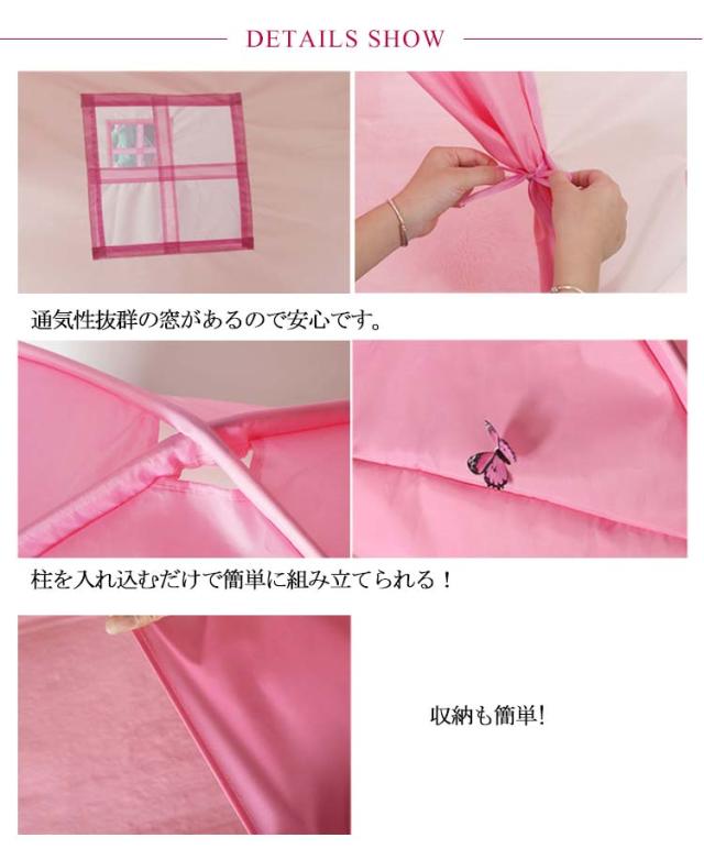| 自分だけの空間が作れるキッズテント! 高さは130cmだから立つことも寝転がることもOK♪ 環境にやさしく安全な素材を使用。 通気性抜群の窓があるので安心です。 お子さまの想像力や創造性、注意力、集中力、思考力なども育てることにも役立つ。 柱を入れ込むだけで簡単に組み立てられる! 収納も簡単! | |