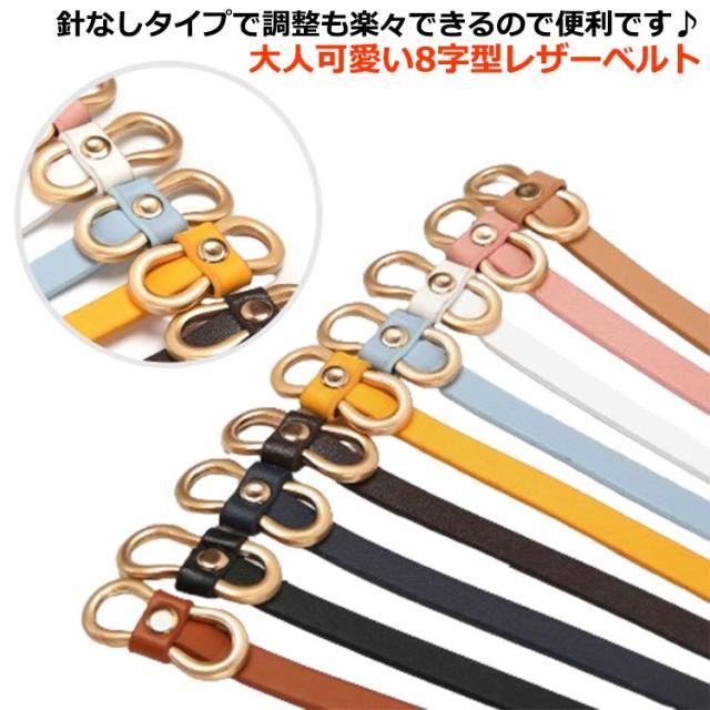 | 針なしタイプで調整も楽々できるので便利です♪ 大人可愛い8字型レザーベルト 高級感のある上質PUレザー。 8字型のゴールドバックルがアクセントのカジュアル・ビジネスベルト。 針なしのサークルリングバックル仕様なので、付けることが簡単で楽ちん。 お洋服が引っかかる心配もないので、カジュアルスタイルに手放せない。 シンプルな服装に合わせるだけで大人かわいいお洒落を楽しめます。 コーデにとってスパイス的な存在でおしゃれ気分が盛り上がるレディースベルトです。 | |