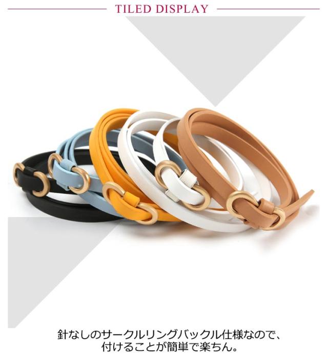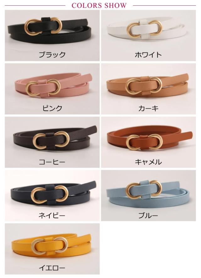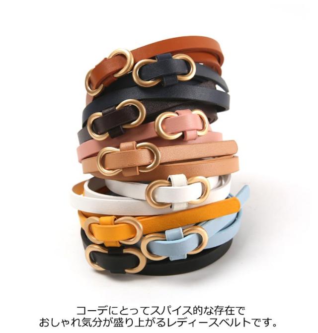 ベルト 細い レディー ワンピース用 おしゃれ 穴なし 穴無し 針なし レディース レザーベルト ゴールドバックル ベルト 細 細い 細め 革 レザー PU 幅1cm 1センチ 105cm スカート パンツ用 シンプル 春 夏 秋 冬 ベルト