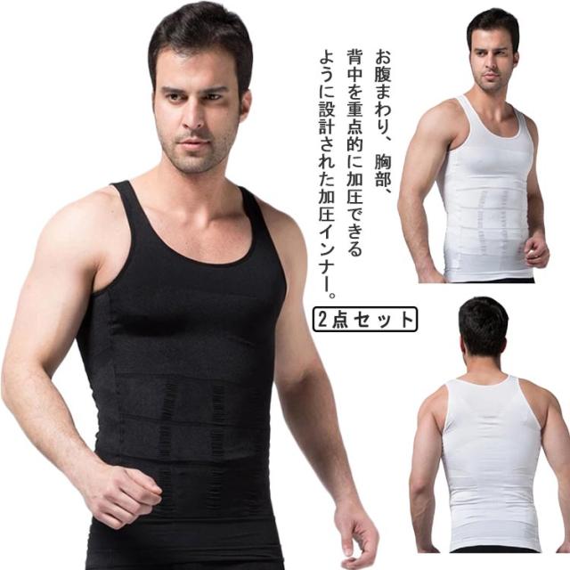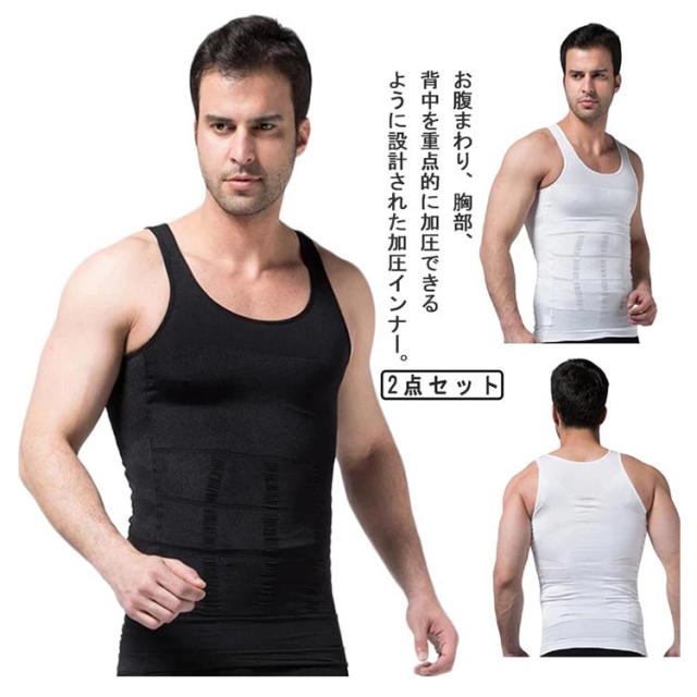 加圧シャツ タンクトップ メンズ 2点セット 加圧 インナー 姿勢 コンプレッションウェア 補正下着 ノースリーブ Tシャツ 黒 白 加圧下着 トレーニング 引き締め 筋トレ サポート ランニング ダイエット S M L XL 2XL
