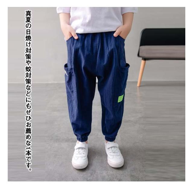 【2枚セット】裾リブパンツ ロングパンツ 子供服 虫よけパンツ キッズ 男の子 ボトムス カーゴパンツ サルエルパンツ リネン風 春夏 無地 サルエル 薄手 サマーパンツ ボーイズ 長ズボン 綿麻風 ジョガーパンツ