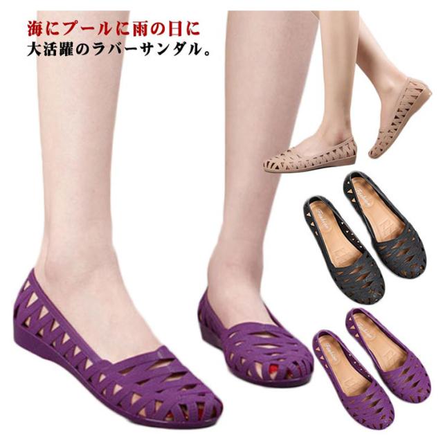 サンダル ぺたんこ フラットサンダル ラバーサンダル レディース ぺたんこサンダル ラバーシューズ ローヒール PVC レインシューズ 軽い 可愛い 婦人サンダル ラバーパンプス 女性 通勤 通学 カジュアル レイングッズ 雨対策
