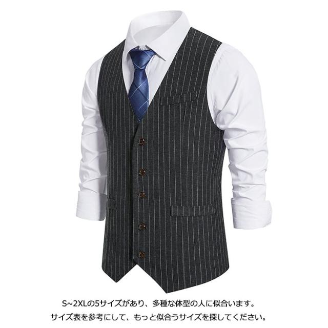 | 定番のスーツベスト:Vネック、上質5つボタン、便利なポケット、調整可能なウエスト、スリムな形がきれいに見えます。 上質な素材感のため、シンプルな白シャツとの相性も抜群、クラシカルな雰囲気醸し出しつつビジネスマンのスタイリッシュなシルエットになります。 S~2XLの5サイズがあり、多種な体型の人に似合います。サイズ表を参考にして、もっと似合うサイズを探してください。 ビジネスやフォーマル・結婚式・成人式・入社式・入学式・卒業式・新生活など、幅広いシーンで使える汎用性の高い1着。父の日・誕生日・バレンタイン大切な男性へのプレゼントとしても大人気! | |
