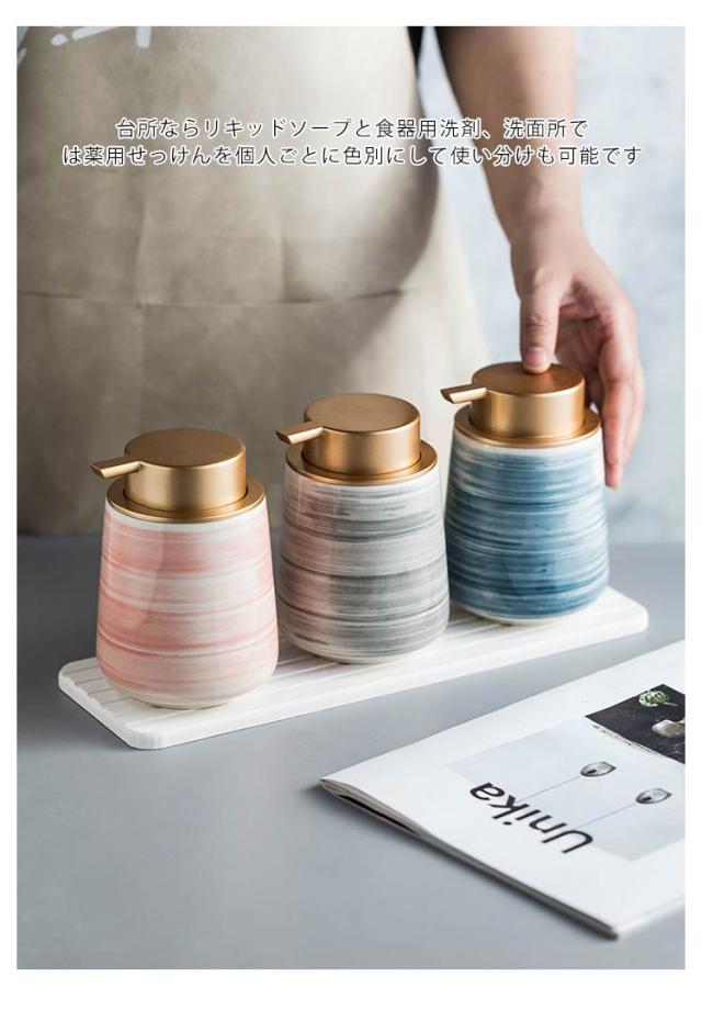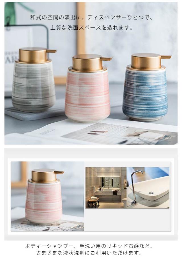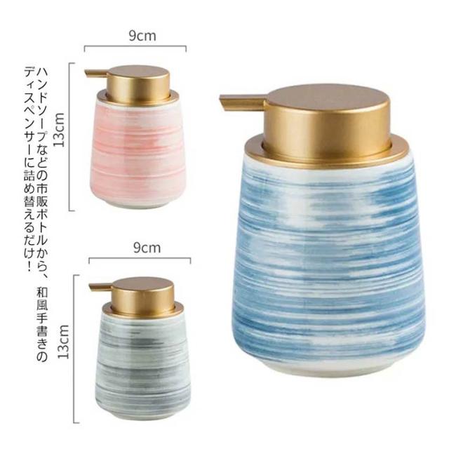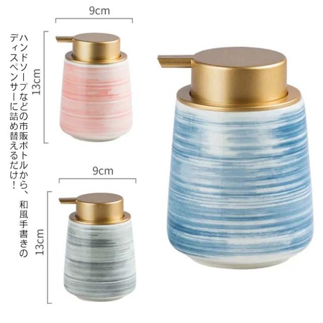 和風 手描き 陶器 ソープディスペンサー 詰め替えボトル セラミック ハンドソープ 北欧 詰め替え用 ボトル 430ml 詰替ボトル おしゃれ おしゃれ 洗剤 詰め替えボトル 3色