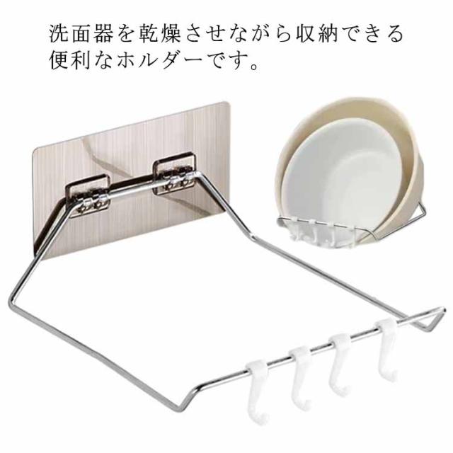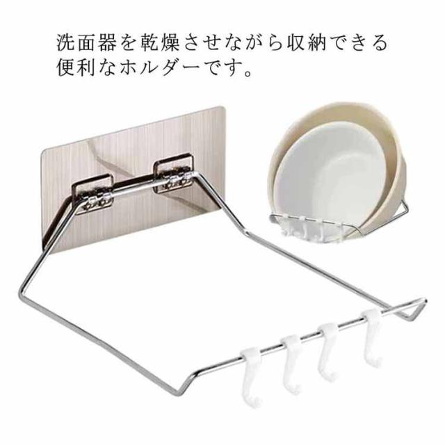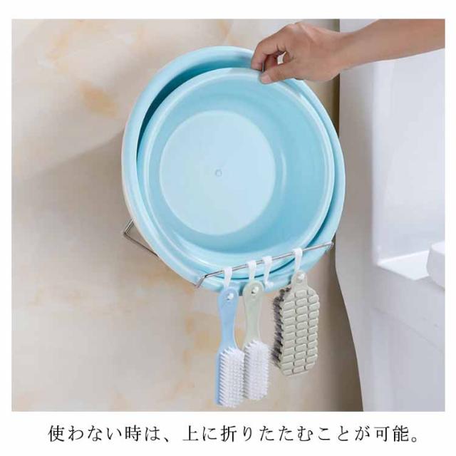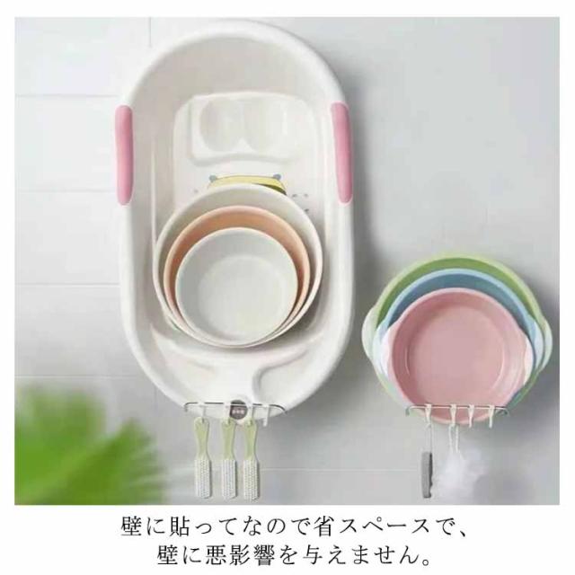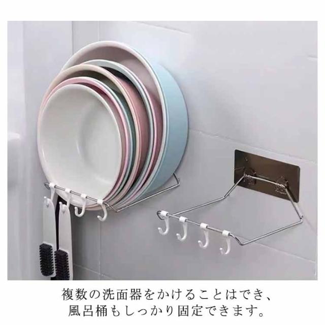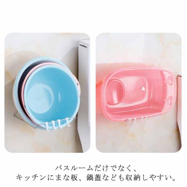 洗面器フック 湯おけホルダー 壁掛けフック 浮かせる収納 穴開け不要 折りたたみ ステンレス お風呂 洗面器ホルダー 風呂桶スタンド 洗い桶掛け 鍋蓋 キッチン収納 多機能ラック バスルーム 浴室 洗面所 便利グッズ