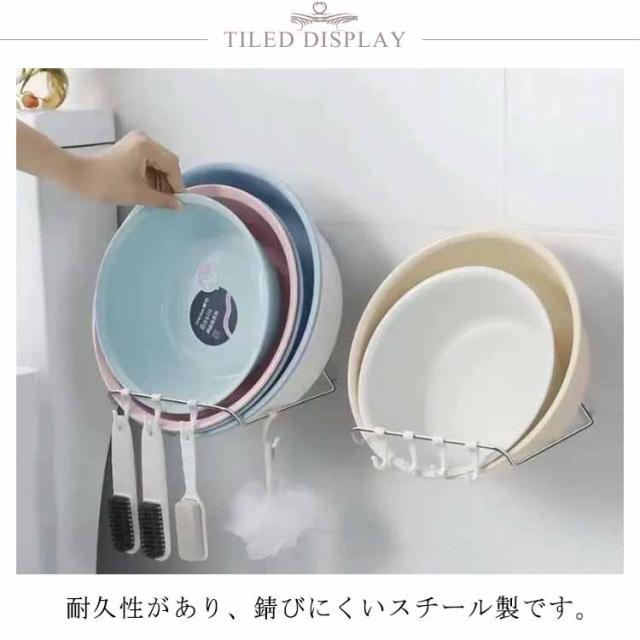 | 洗面器を乾燥させながら収納できる便利なホルダーです。 耐久性があり、錆びにくいスチール製です。 複数の洗面器をかけることはでき、風呂桶もしっかり固定できます。 壁に貼ってなので省スペースで、壁に悪影響を与えません。 使わない時は、上に折りたたむことが可能。 バスルームだけでなく、キッチンにまな板、鍋蓋なども収納しやすい。 | |