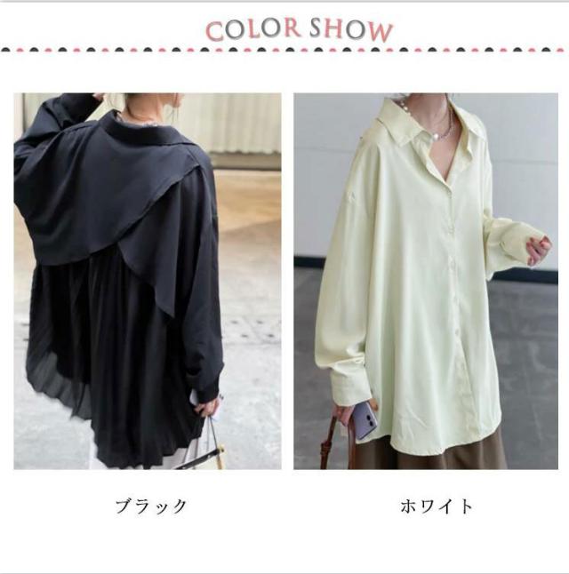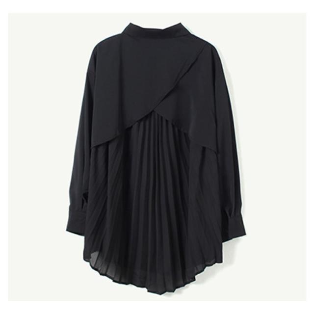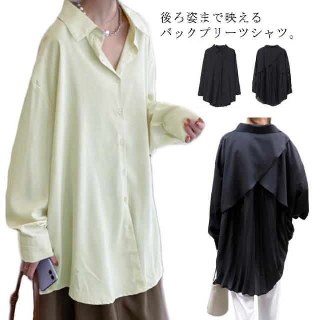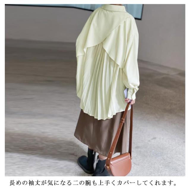 シャツ レディース バックプリーツ シャツ 長袖 チュニック ブラウス 抜き襟 トップス 春夏 襟付きシャツ プリーツシャツ フレア ロングシャツ ミドル丈 羽織り 無地 シンプル 落ち感 オーバーサイズ ゆったり 体型カバー 送料無料 おしゃれ きれいめ 上品 大人 夏服 春服