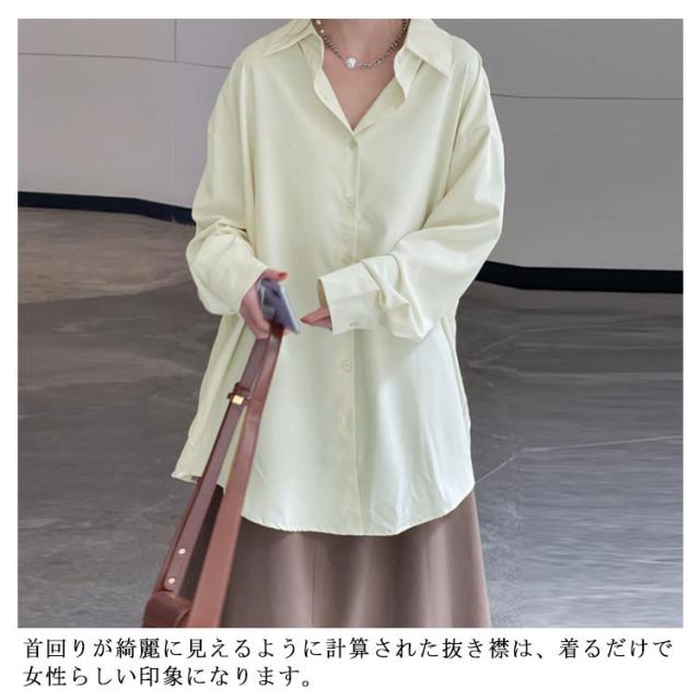 | 後ろ姿まで映えるバックプリーツシャツ。 な色から大人っぽい鮮やかな色まで取り揃えゆるっと着られるシルエットが体のラインを捨わずオシャレに。 首回りが綺麗に見えるように計算された抜き襟は、着るだけで女性らしい印象になります。 長めの袖丈が気になる二の腕も上手くカバーしてくれます。 バックプリーツ部分は程良いシアーでトレンドライクに。 さらっと落ち感きれいな素材だから、軽やかに上品さ漂う。 ボタンを開けて羽織りとしても使える、上品にきちんと見え叶える一枚で目を引くシャツ。 | |