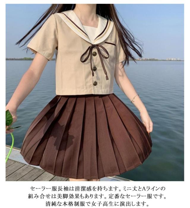 送料無料 セーラー服 制服 学生服 長袖 半袖 女子高生 入学式 卒業式 茶色 コスプレ衣装 卒業式スーツ 入学式スーツ 女子高生 制服 上下セット スカート コスチューム コスプレ衣装 大きいサイズ 春夏秋