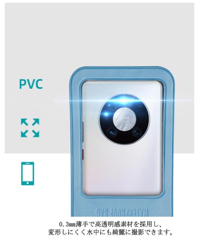 | 水深30mにも完全防水!スマホ防水ケース 優れた密閉性で水深30mで水の侵入も防ぎます。 顔認証対応し、ケースを付いたままでノックに解除も簡単に行えます。 0.3mm薄手で高透明感素材を採用し、変形しにくく水中にも綺麗に撮影できます。 雨日、ビーチ、温泉など場合ではスマホを防水カバーに収納したままで写真や撮影を気楽に遊んで楽しめます。 | |