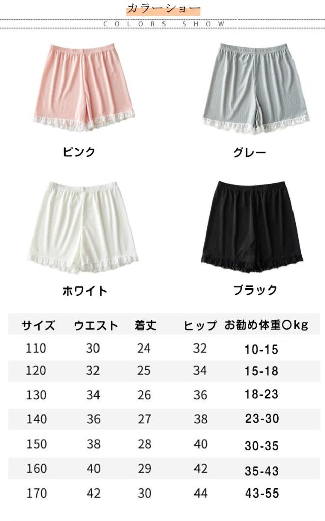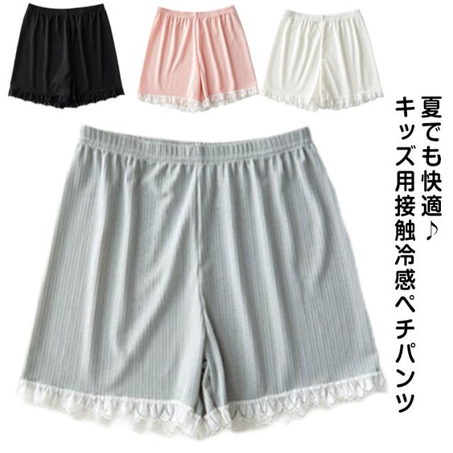 ペチパンツ キッズ インナーパンツ 接触冷感 ひんやり ペチコート パンツ 女の子 子供 下着 肌着 薄手 涼しい 見せパン 透け防止 チラ魅せ ペチパン 安全パンツ 裾レース ガーリー ジュニア 小学生 子供服 子ども服 こども ストレッチ ウエストゴム 送料無料 110-170cm